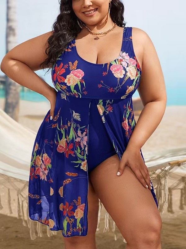 Новый европейский и американский 2023 Amazon толстый размер, чтобы покрыть живот, тонкий консервативный цифровой принт, разделенный бикини