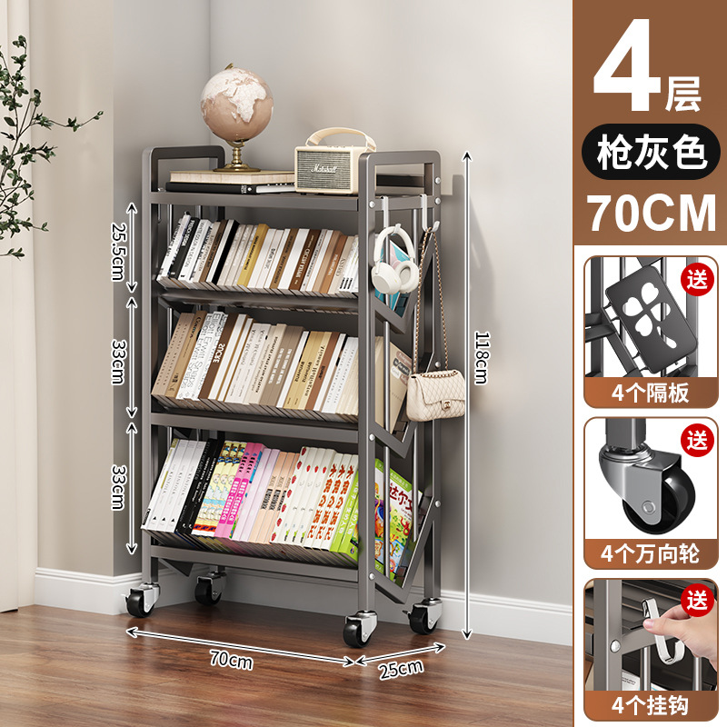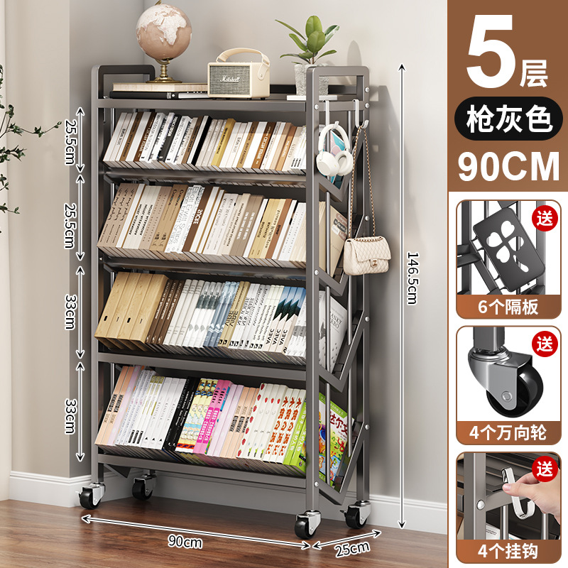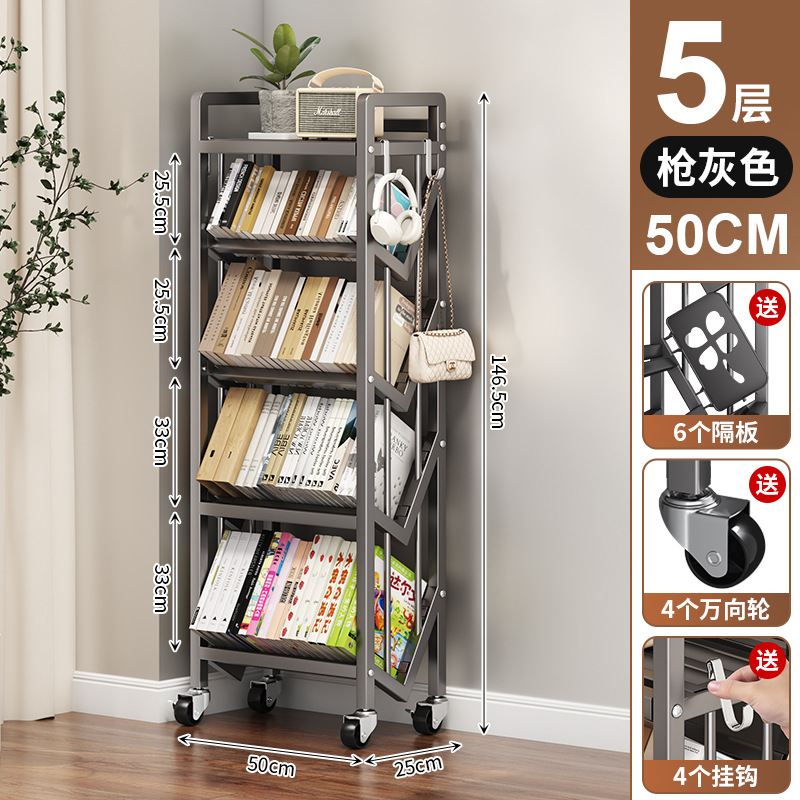 Книжная полка на полу для домашнего использования Многослойные книжные шкафы из нержавеющей стали Книжный шкаф для домашнего чтения Детские книжные шкафы для хранения