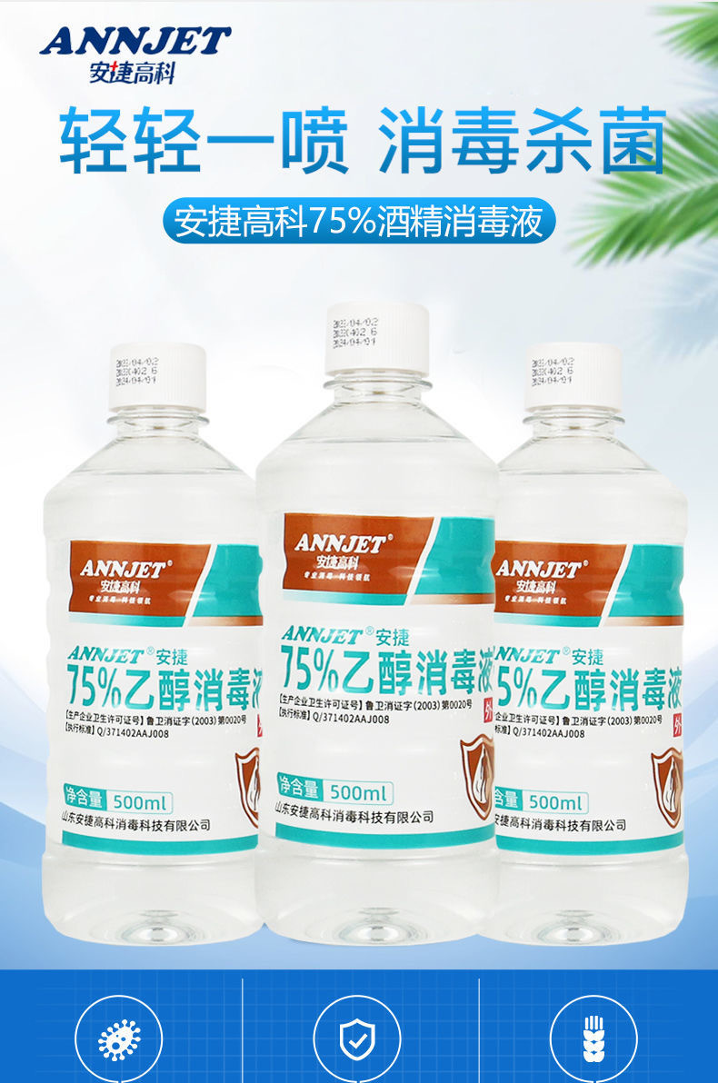 Anjie 75% спирт этанол дезинфицирующее средство 500 мл для дезинфекции домашней кожи 100 мл алкоголь для гостиничного магазина