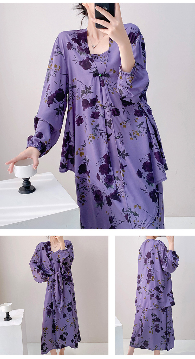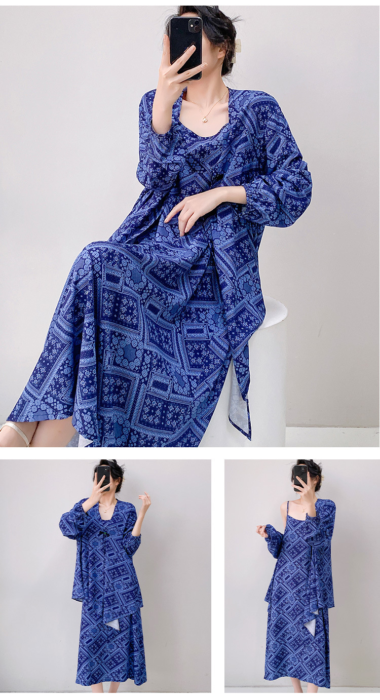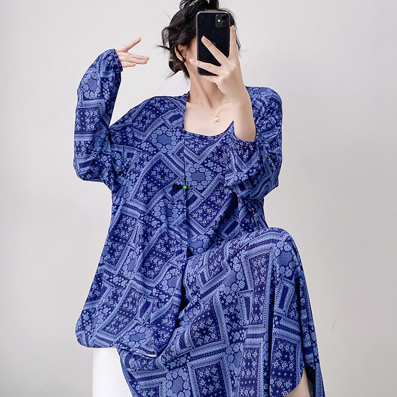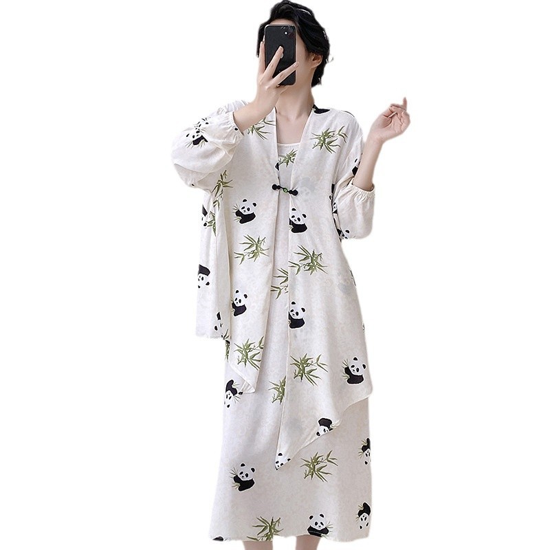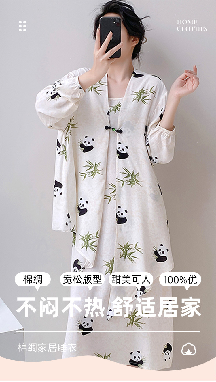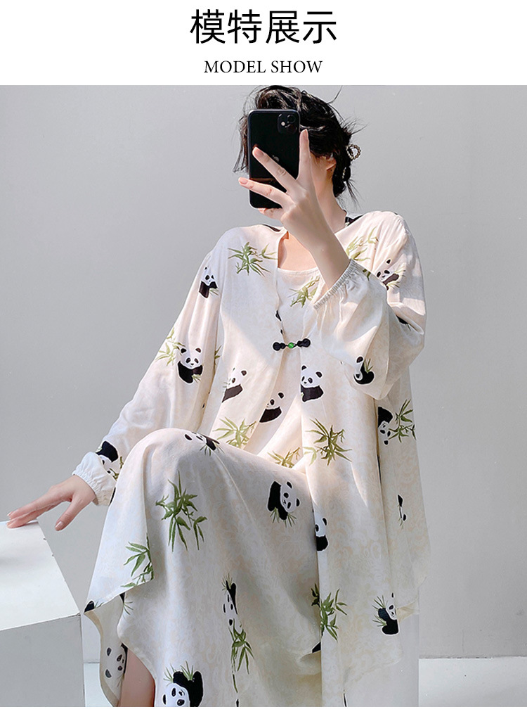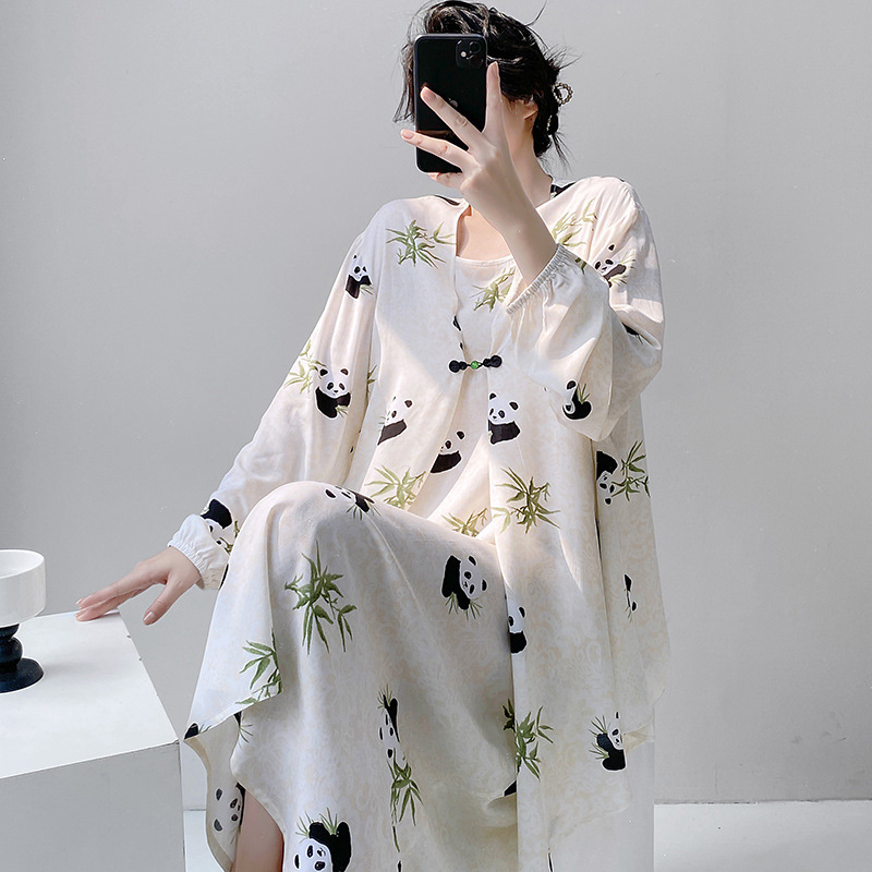 Новый китайский стиль весенний и осенний принт свободная женская летняя ночная рубашка