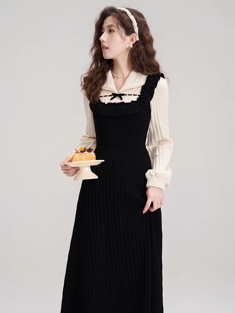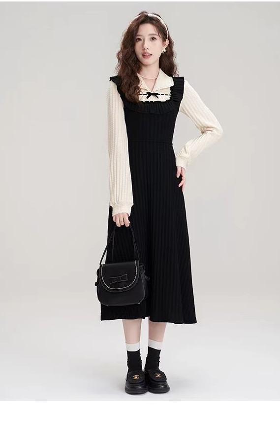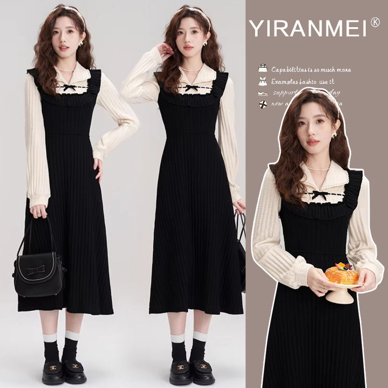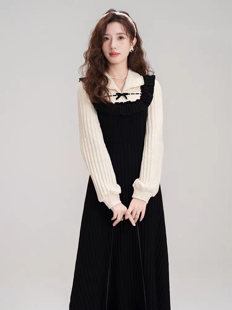 2024 осень и зима новый стиль Хепберн стиль вязаный свитер для беременных поддельные два цвета