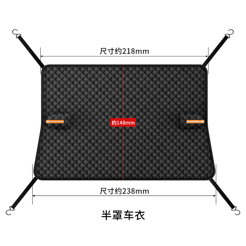 1、铝膜材质,不伤车漆,防晒、隔热、防雨雪、防风尘、防划痕、抗拉力强。