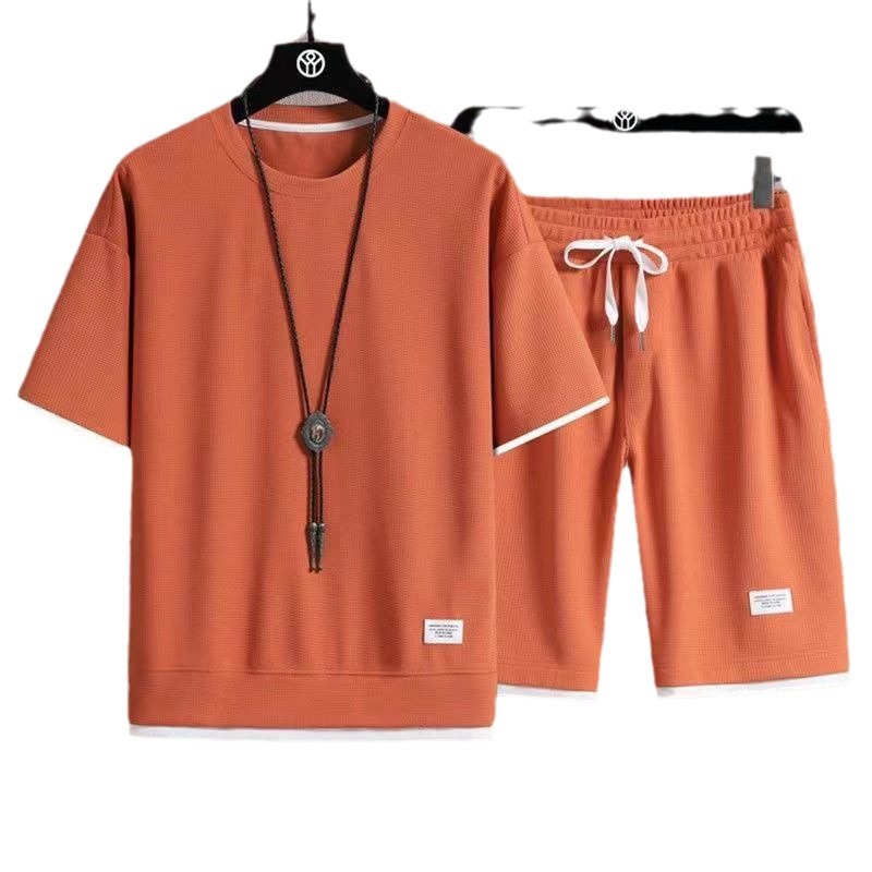 Новый летний вафли набор свободных молодых красивых пар шорты с короткими рукавами 2 комплекта спортивной одежды для мужчин