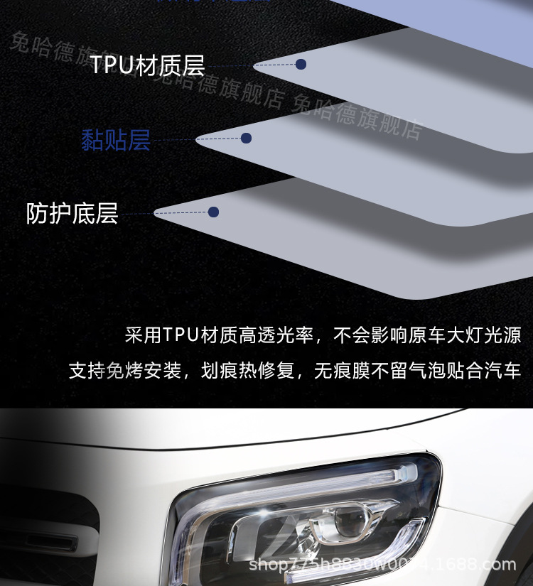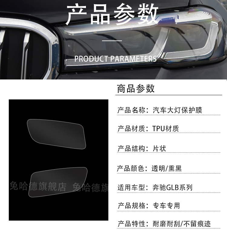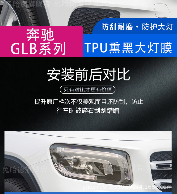 Выбор прозрачной пленки для фар из ТПУ Mercedes-Benz GLB; Отборная черненая пленка для фар из ТПУ Mercedes-Benz GLB