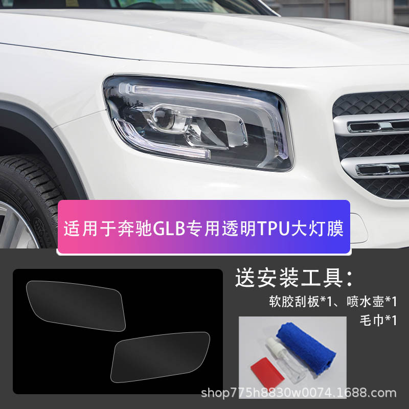 Подходит для защитной пленки для фар Mercedes-Benz GLB, прозрачная черненая пленка из ТПУ, модифицированная, износостойкая, суперяркая, меняющая цвет, для автомобильных фар.