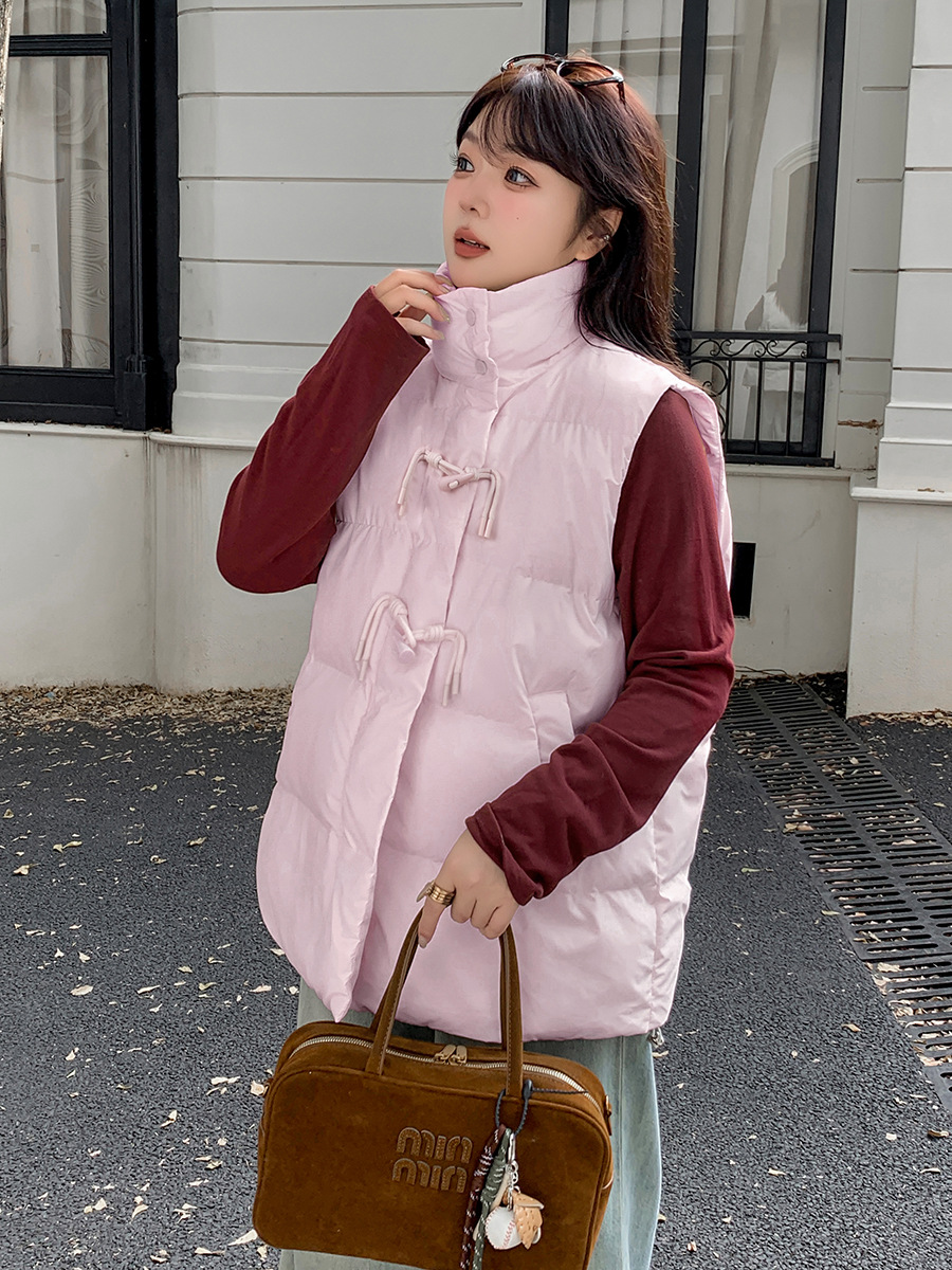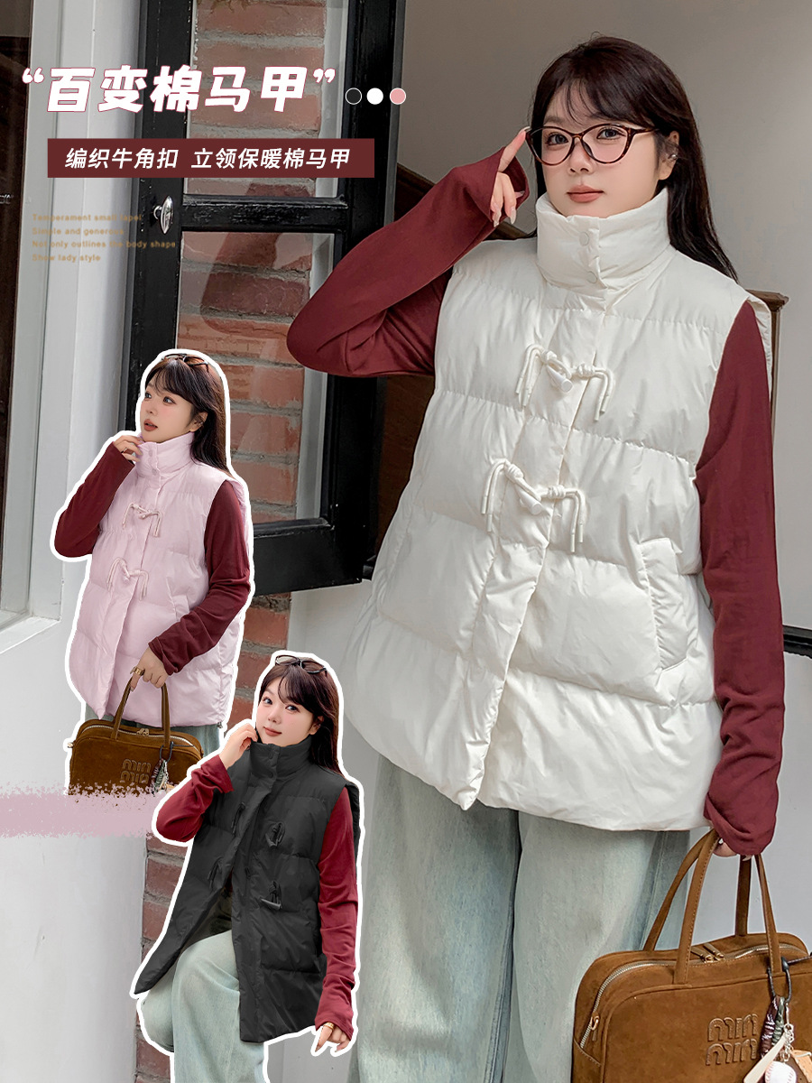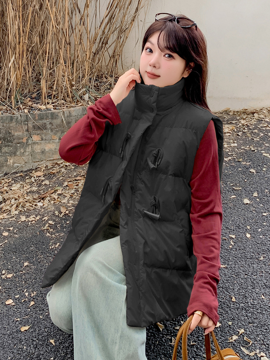 Yino большой размер женская роговая пряжка стоячий воротник хлопковый жилет осень-зима новый толстый теплый безрукавный топ 341732