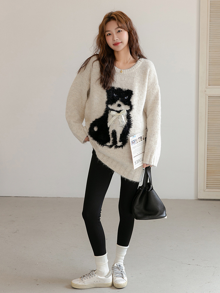 Осенние и зимние беременные свитера свободная средняя длинная одежда для беременных мультяшные собаки беременные вязаные нижние рубашки повседневная мода