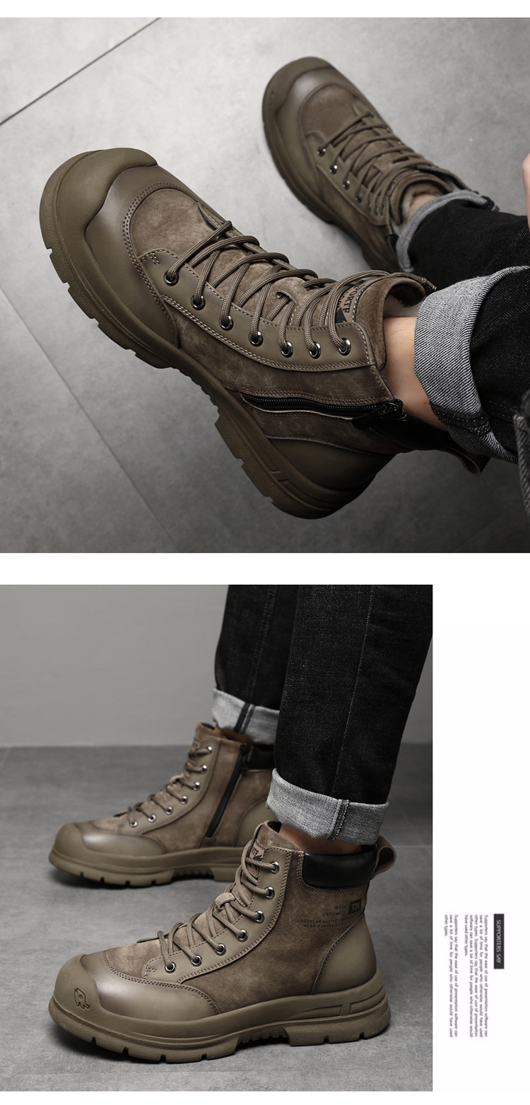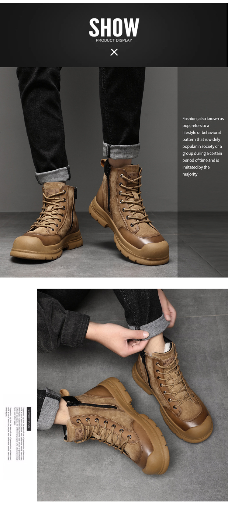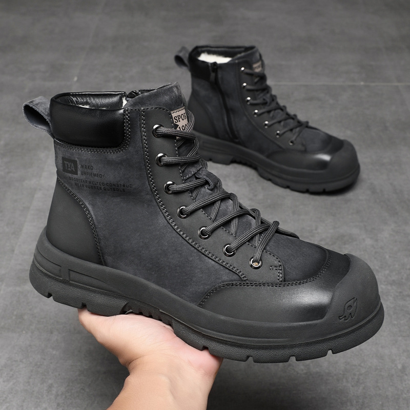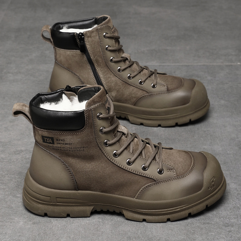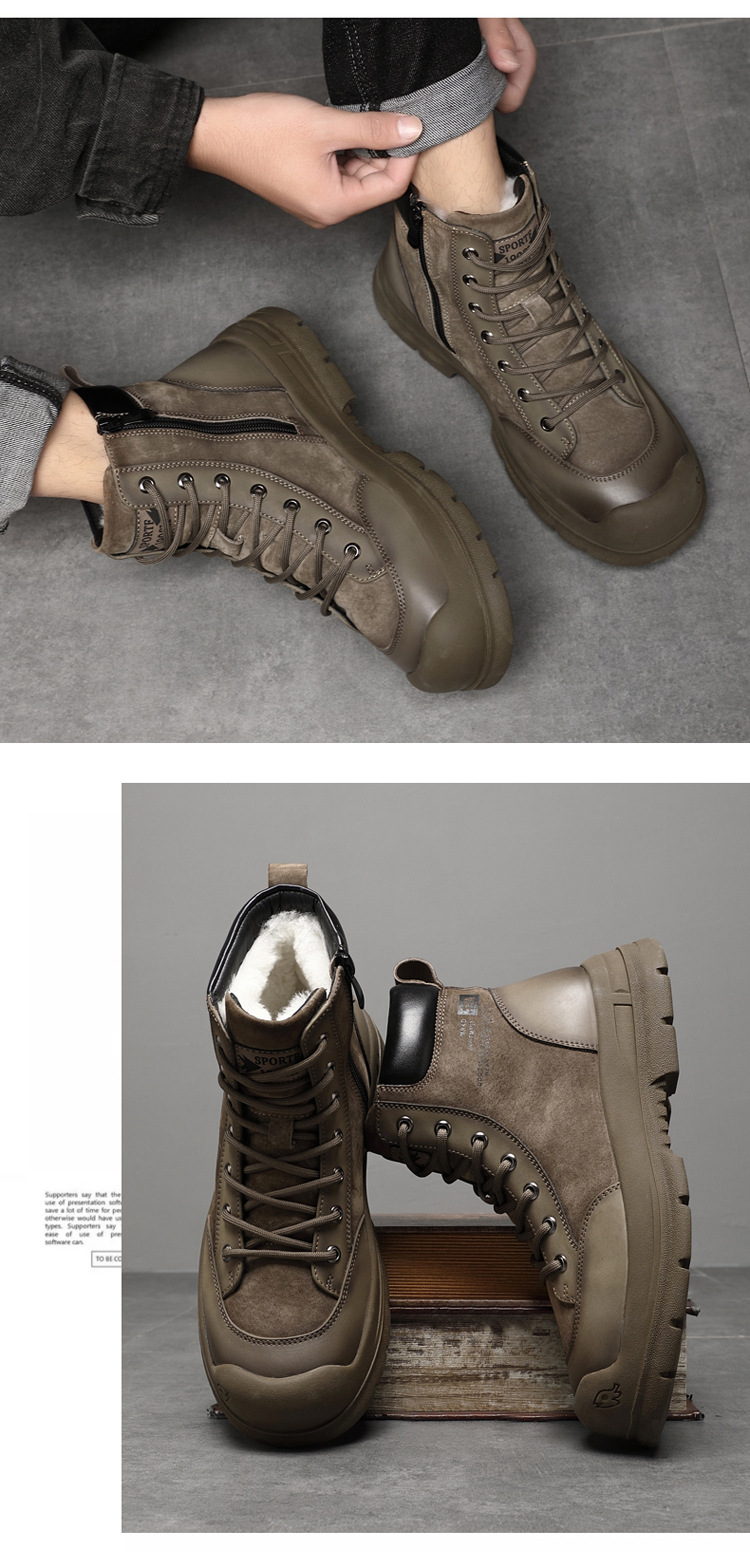 Осенне-зимние мужские ботинки Martin из натуральной кожи, шерстяная подкладка в британском стиле, модные мужские туфли средней высоты со встроенной кожей и мехом.