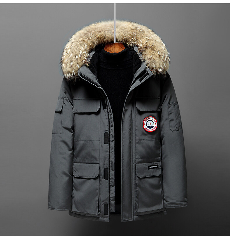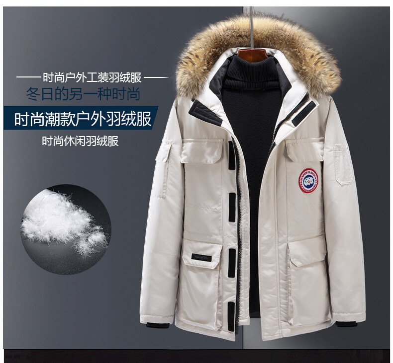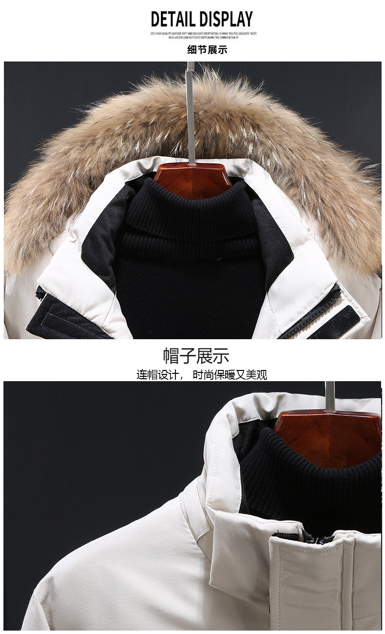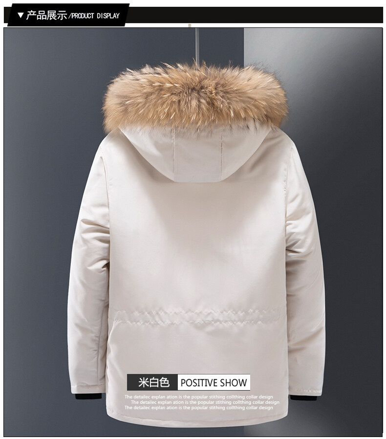 Зимний толстый пуховик с капюшоном мужской короткий молодой белый утиный пух теплый повседневный шерстяной воротник