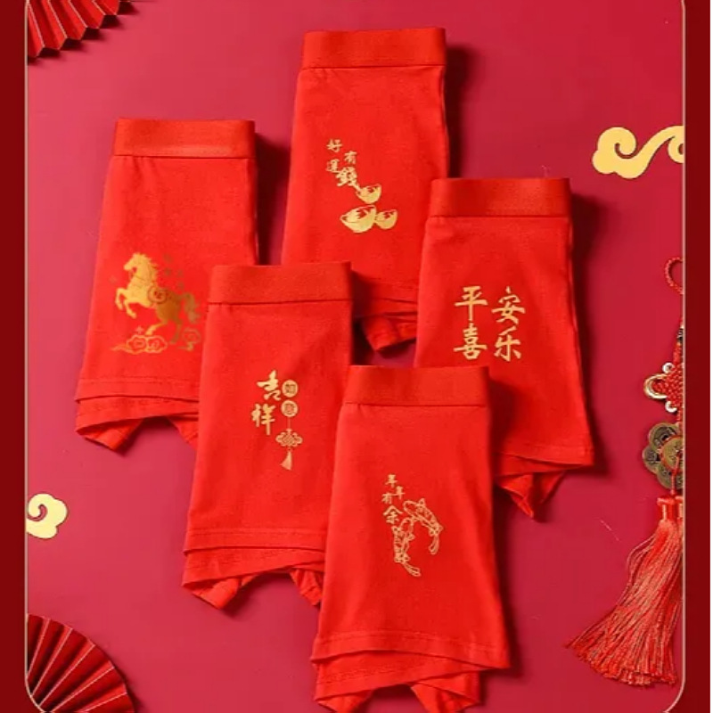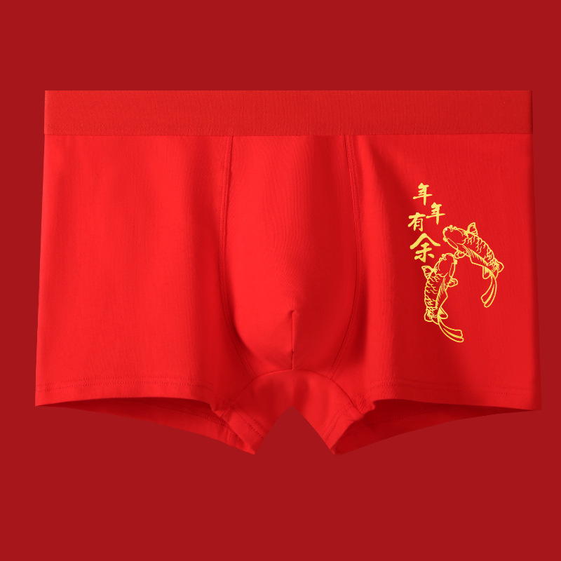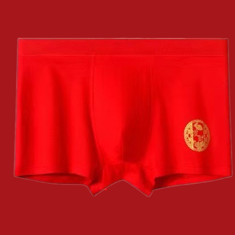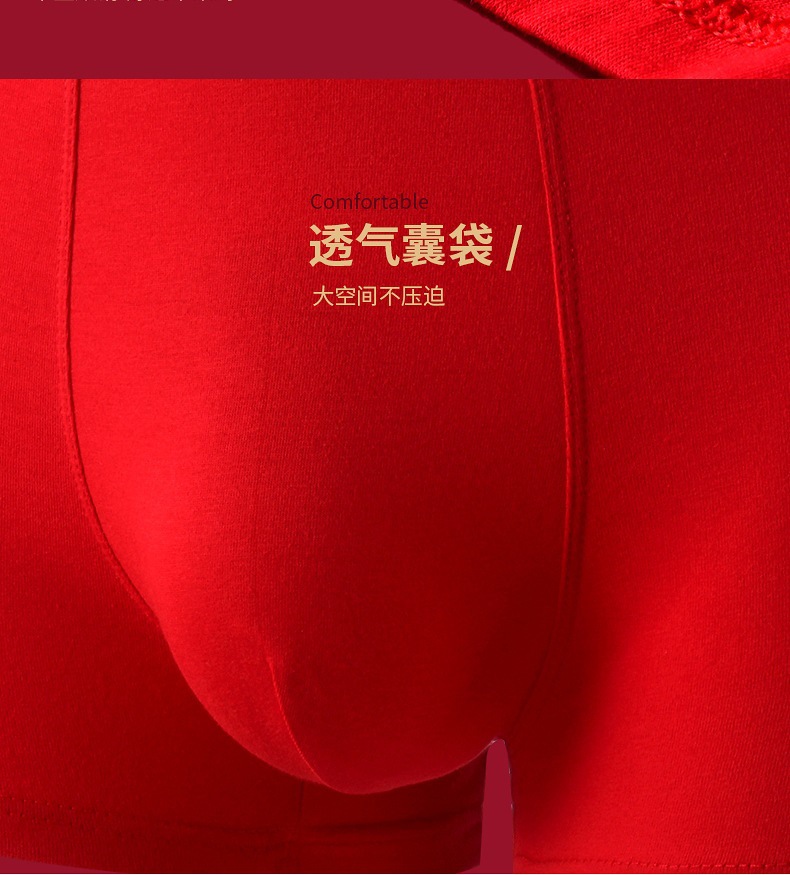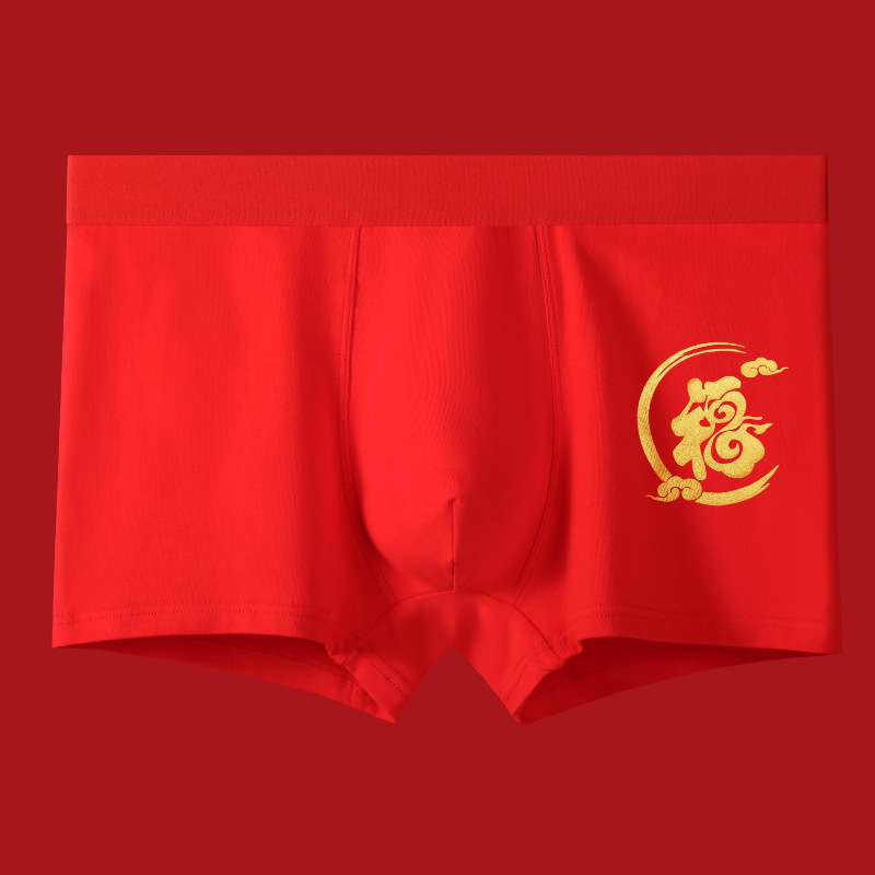 Мужские трусы из чистого хлопка, красные, на год рождения, антибактериальные, дышащие, боксеры, для свадьбы, Нового года, на удачу, оптом