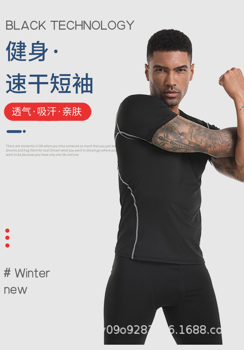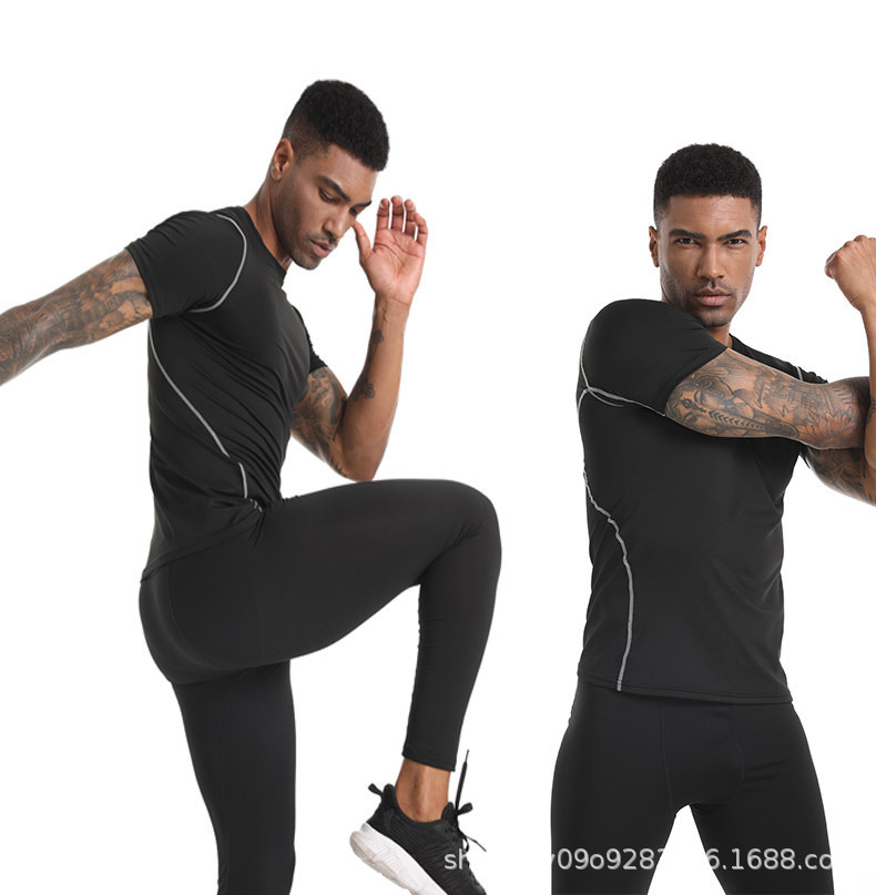 Спортивная одежда Мужская спортивная колготка с короткими рукавами эластичная дышащая беговая футболка с быстрой сушкой через границу в наличии
