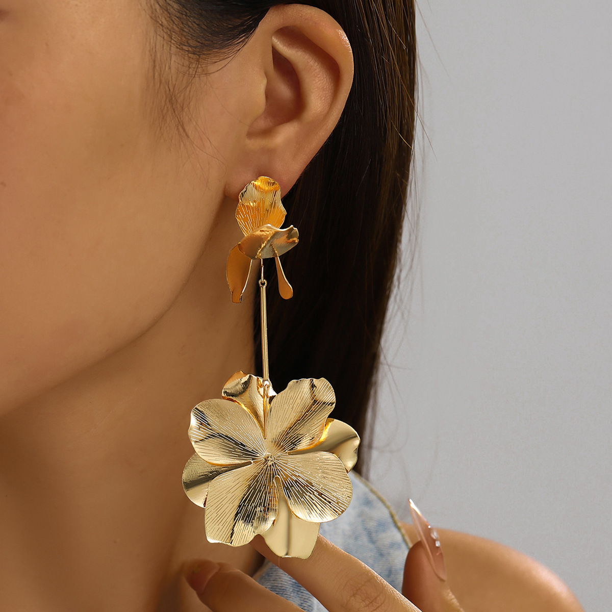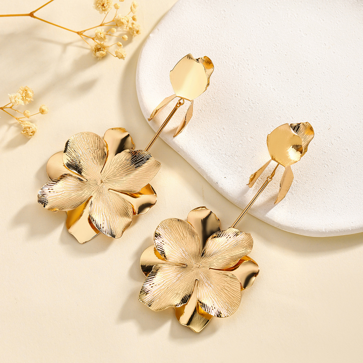 合金花瓣吊坠耳钉