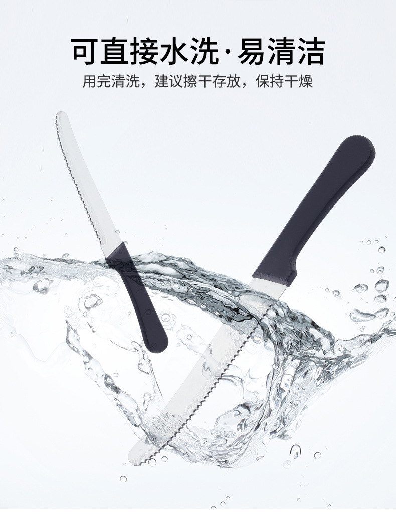 Черный нож для стейка (полипропиленовый пакет); Черный нож для стейка (герметичный пакет OPP); Черный нож для стейка (белая бумажная обложка); заостренный; Черный наконечник, окрашенный распылением