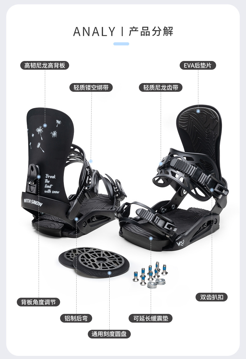 WS шпон фиксатор традиционное сноуборд-фиксатор алюминиевый задняя изогнутая высокая задняя пластина прочная и долговечная