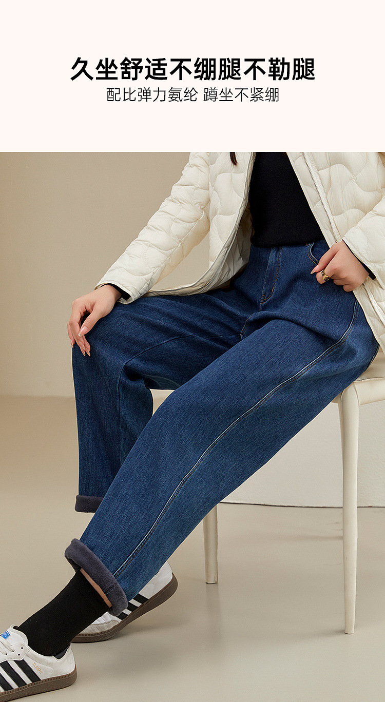 [Нулевые мягкие теплые штаны папы] Fertily Show большой размер женские дикие тонкие джинсы толстый мм зимний новый