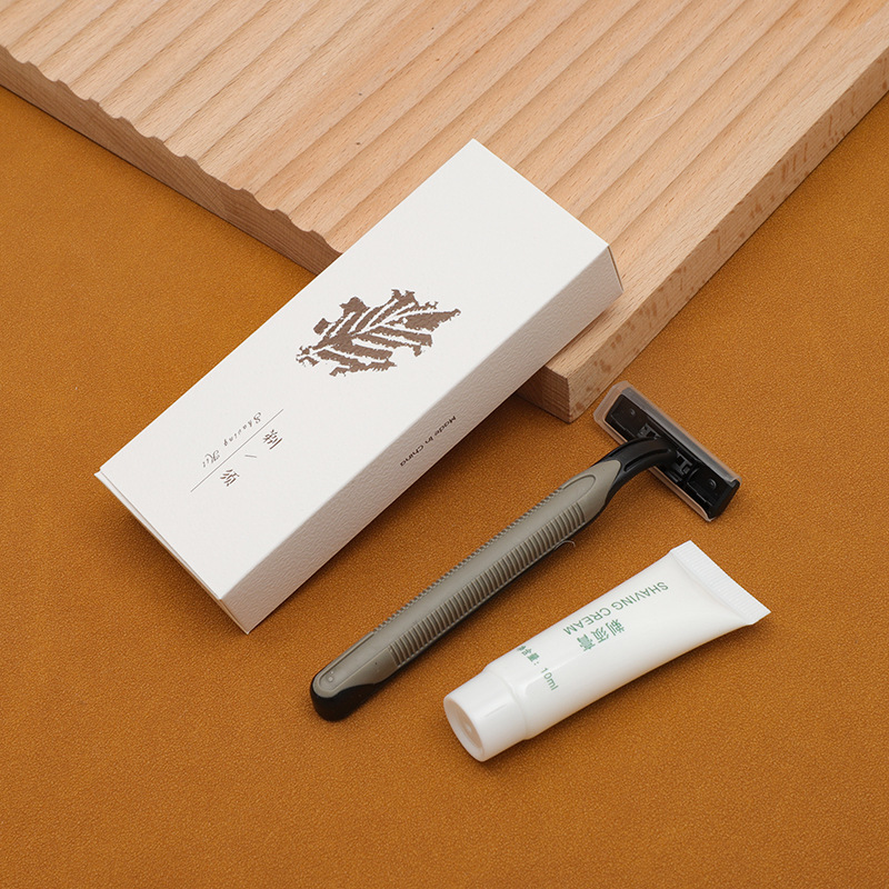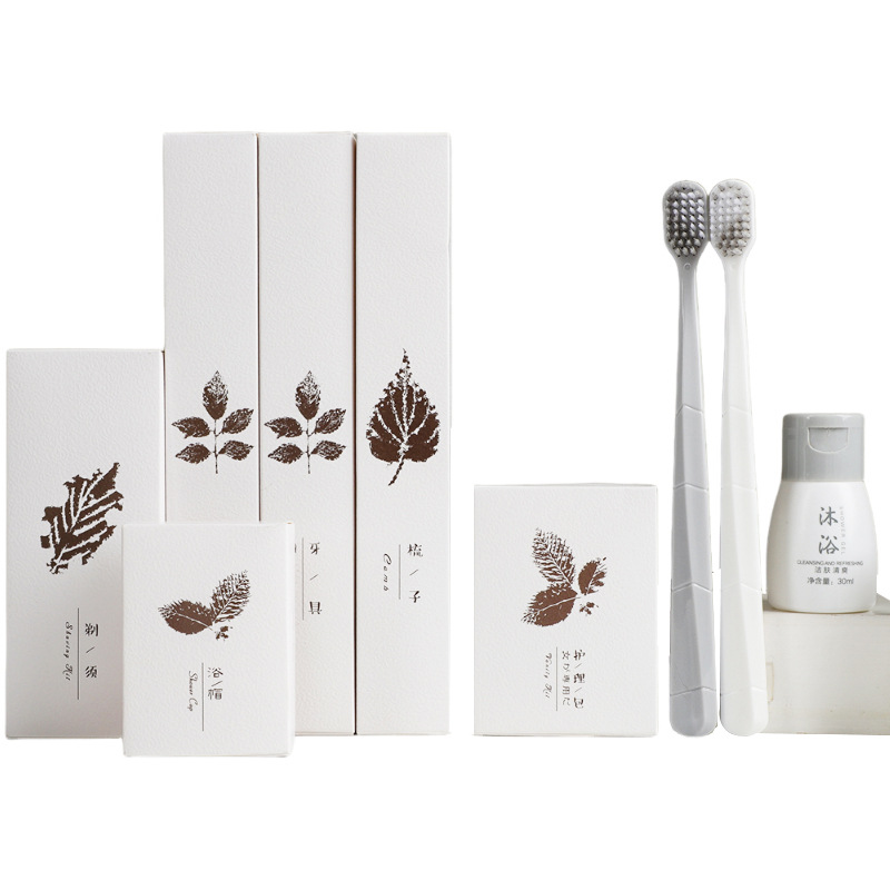Бумажная коробка с тиснением-стоматологический набор зубной пасты 3г; Тисненая картонная расческа; Кепка для душа из тисненой картонной коробки; Бритва-картон с тиснением, паста 10г.; Хлопковый лист с тиснением в картонной упаковке; шампунь; баня