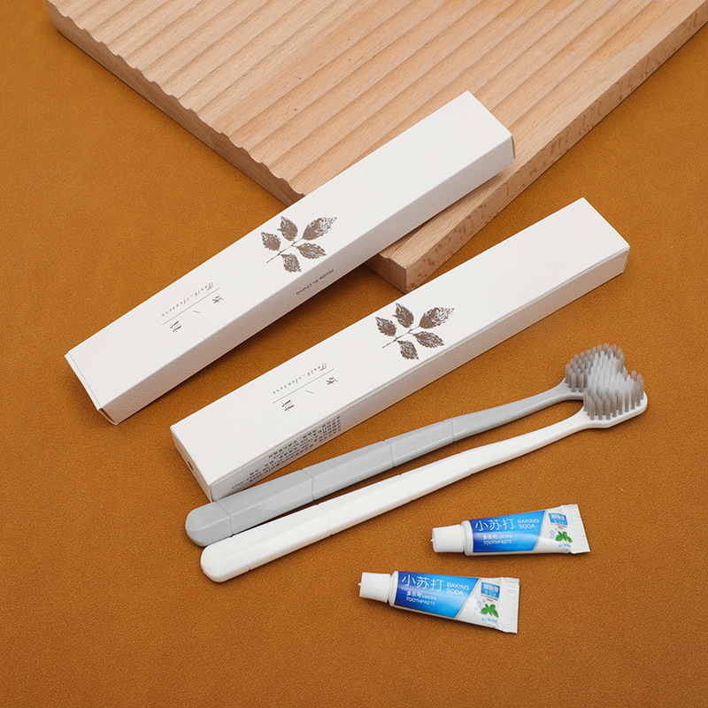 Одноразовая зубная щетка в тисненой бумажной упаковке для отелей, оптом, с большой головкой, мягкой щетиной, набор с зубной пастой