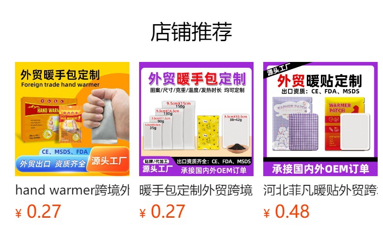 Экспорт из Хэбэя Фэйфан в Южную Корею: 150 г ручной грелки, OEM-производство на заказ, сумка для грелки.