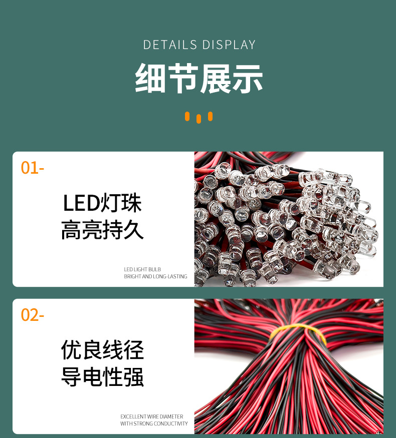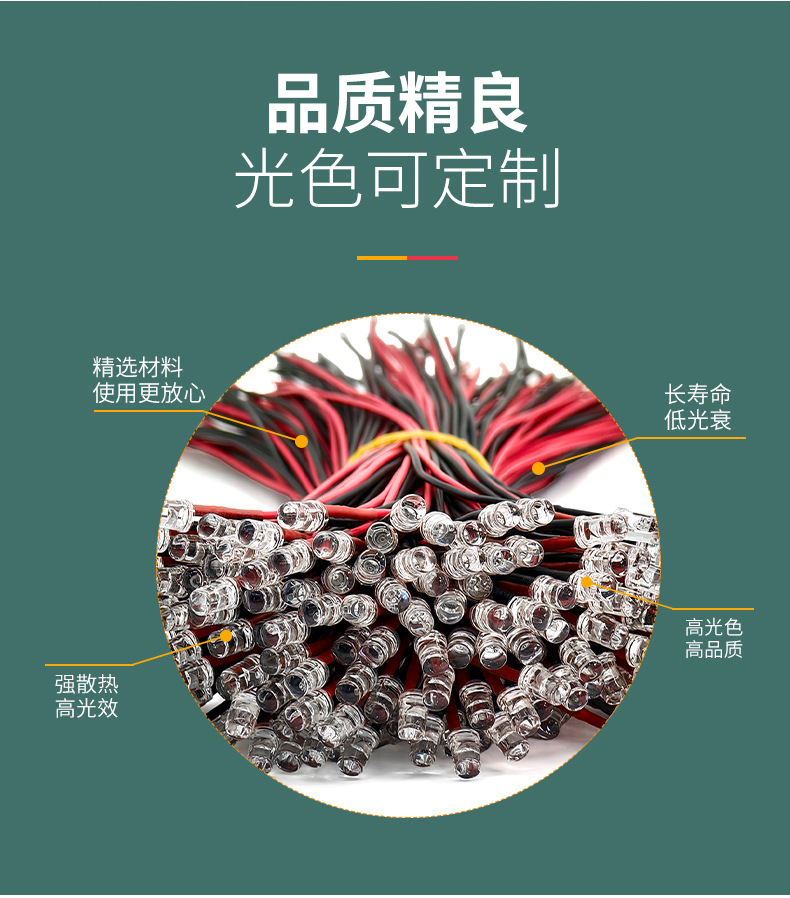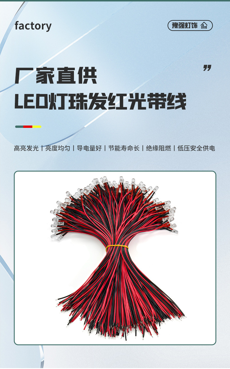 Светодиодные бусины излучают красный свет с проволокой.