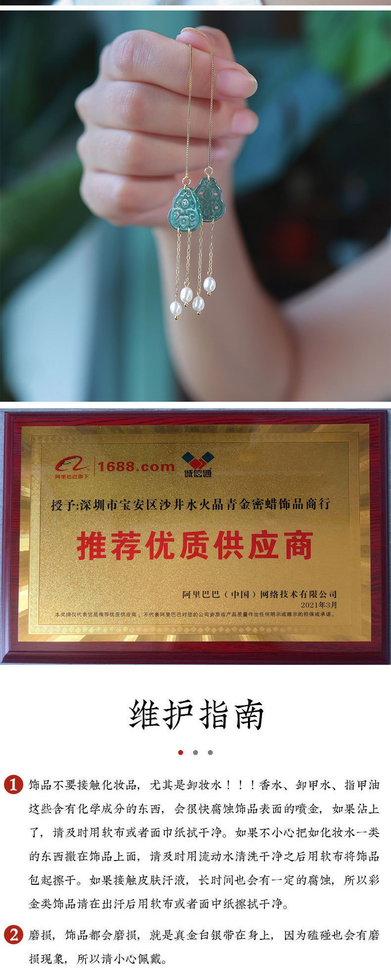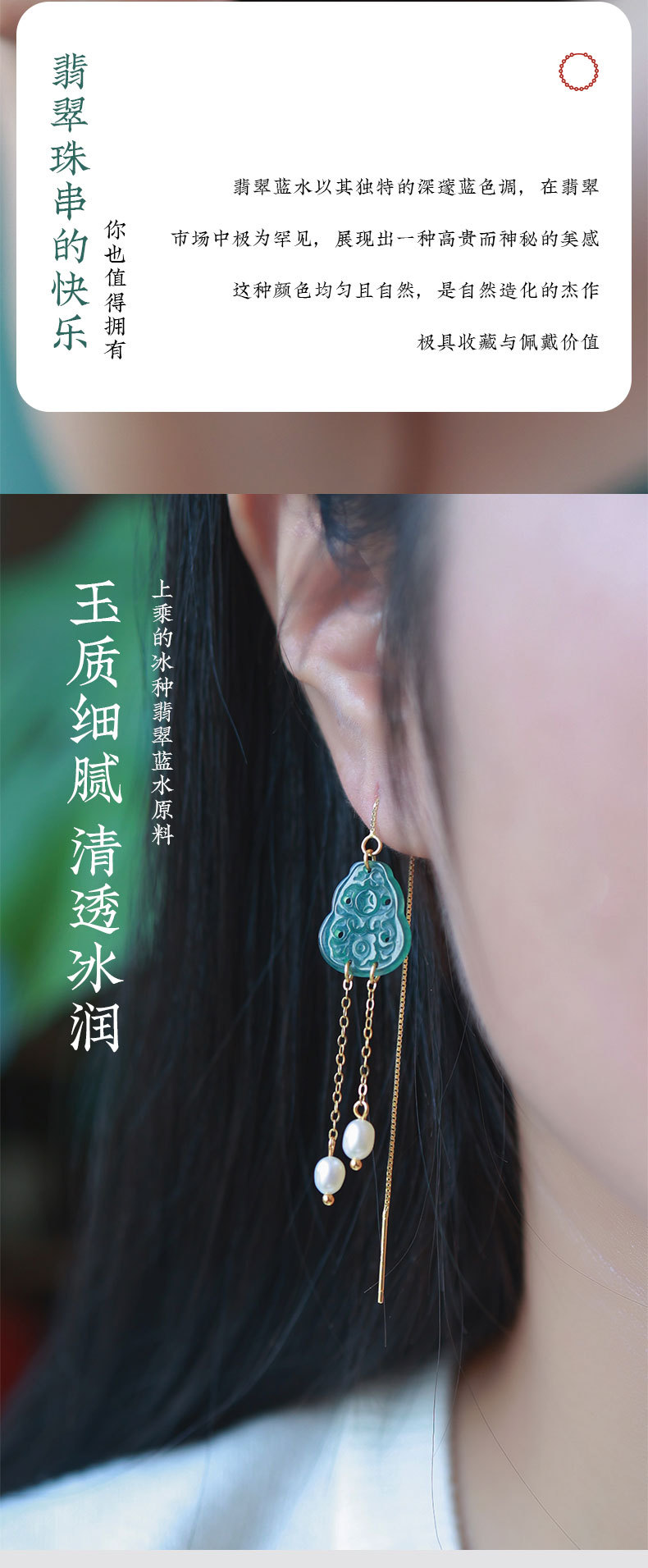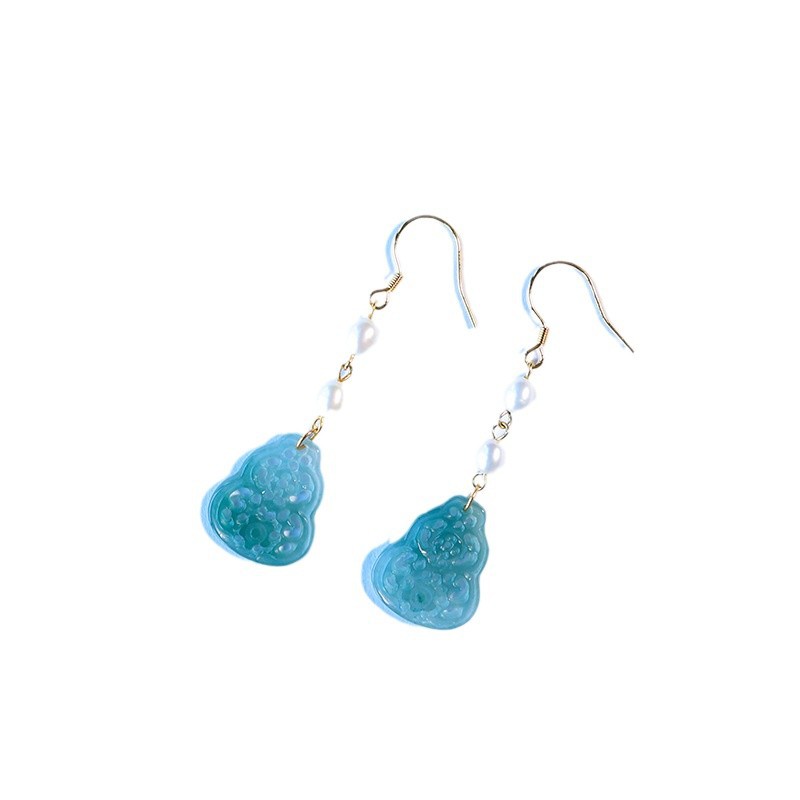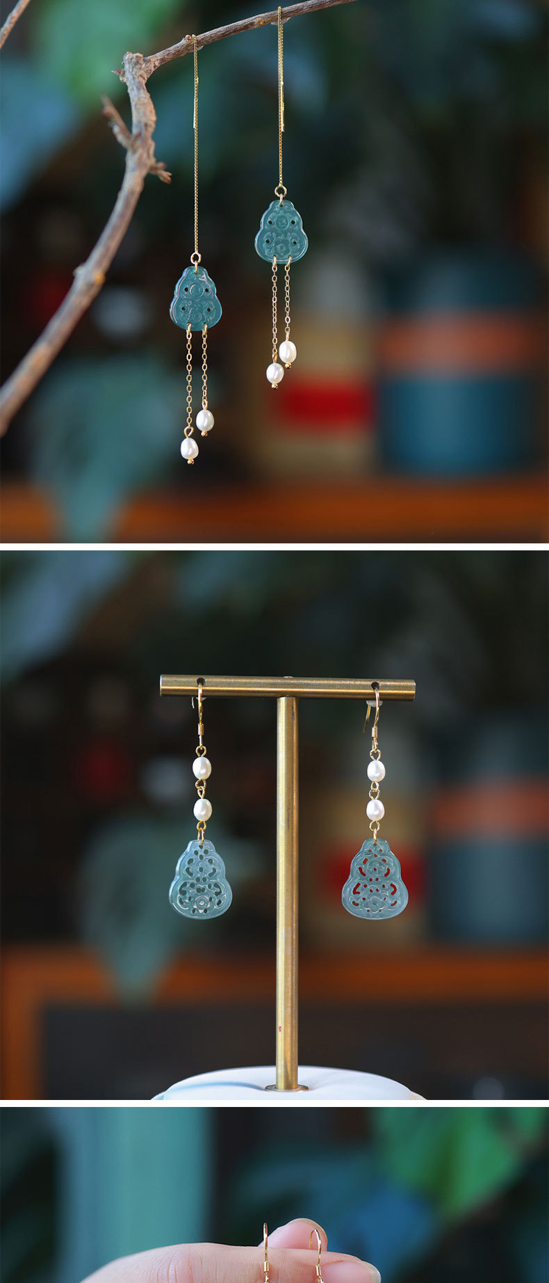 Полый нефрит из ледяного нефрита + жемчуг [полное тело, серебро 925 пробы, позолоченная проволока для ушей]; 2 полые серьги из ледяного нефрита + жемчуга [позолоченные серьги из серебра 925 пробы]