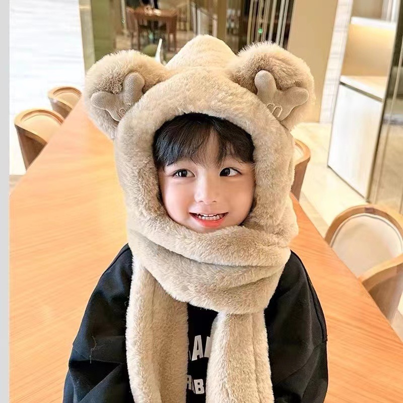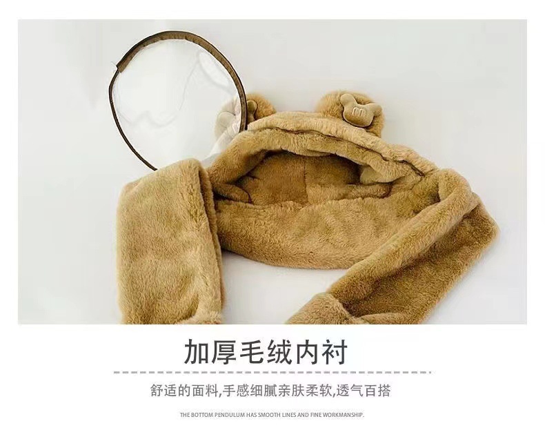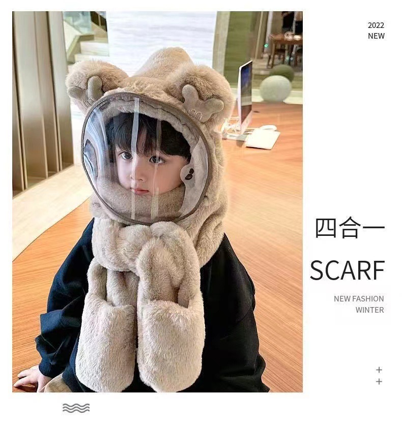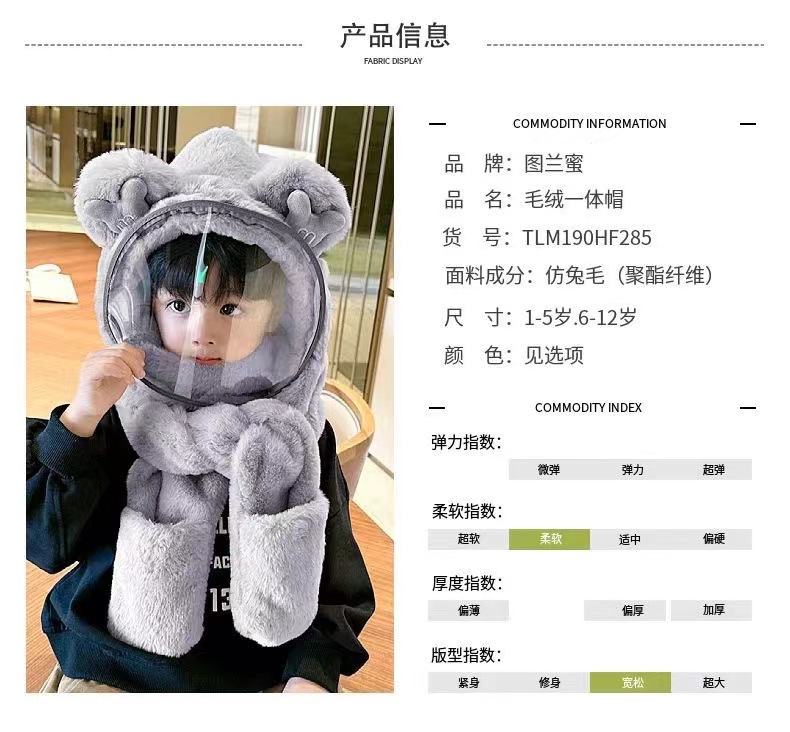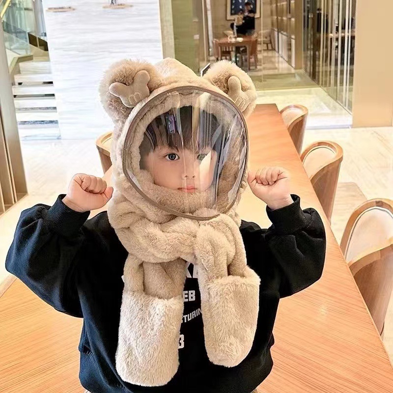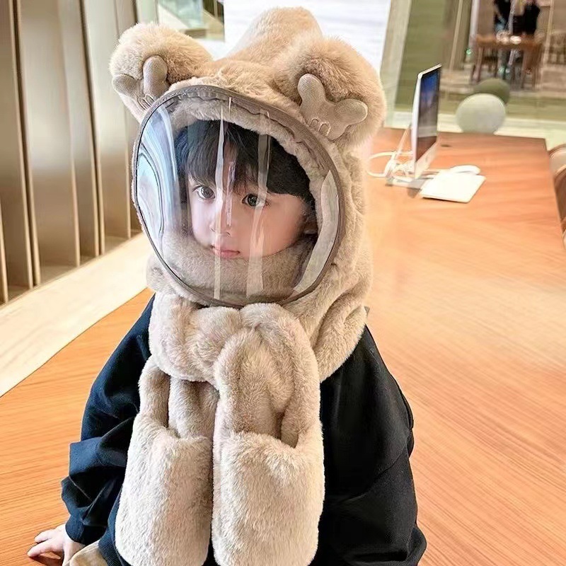 Детская шляпа Зимняя езда Тепловая плюшевая шляпа для мужчин и женщин Детская защитная маска для лица Детский шарф перчатки в одном шапке Ветрозащитный