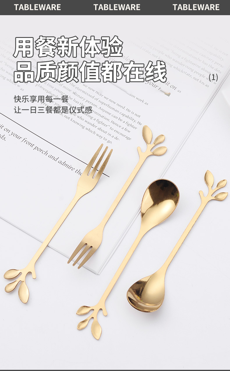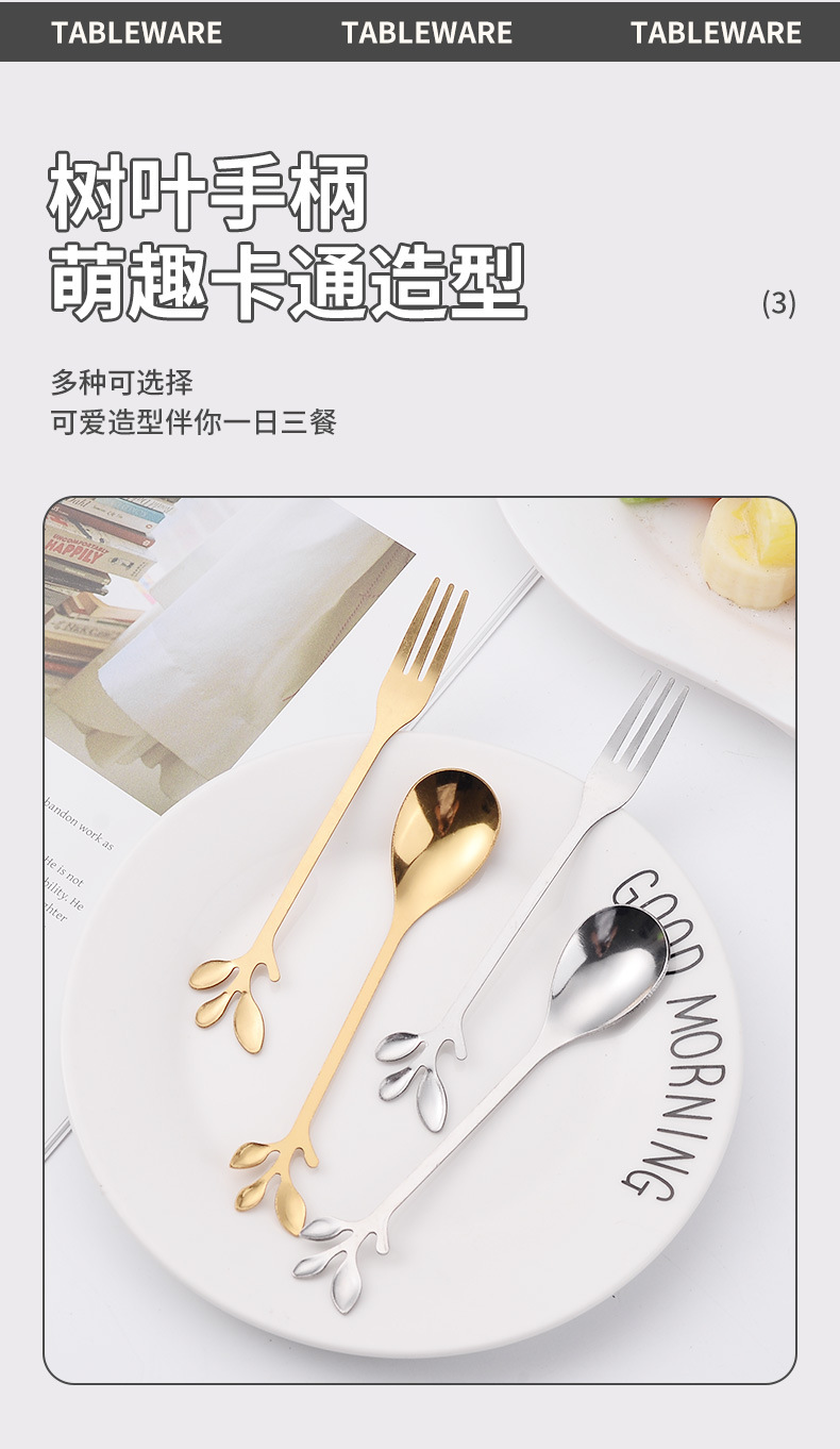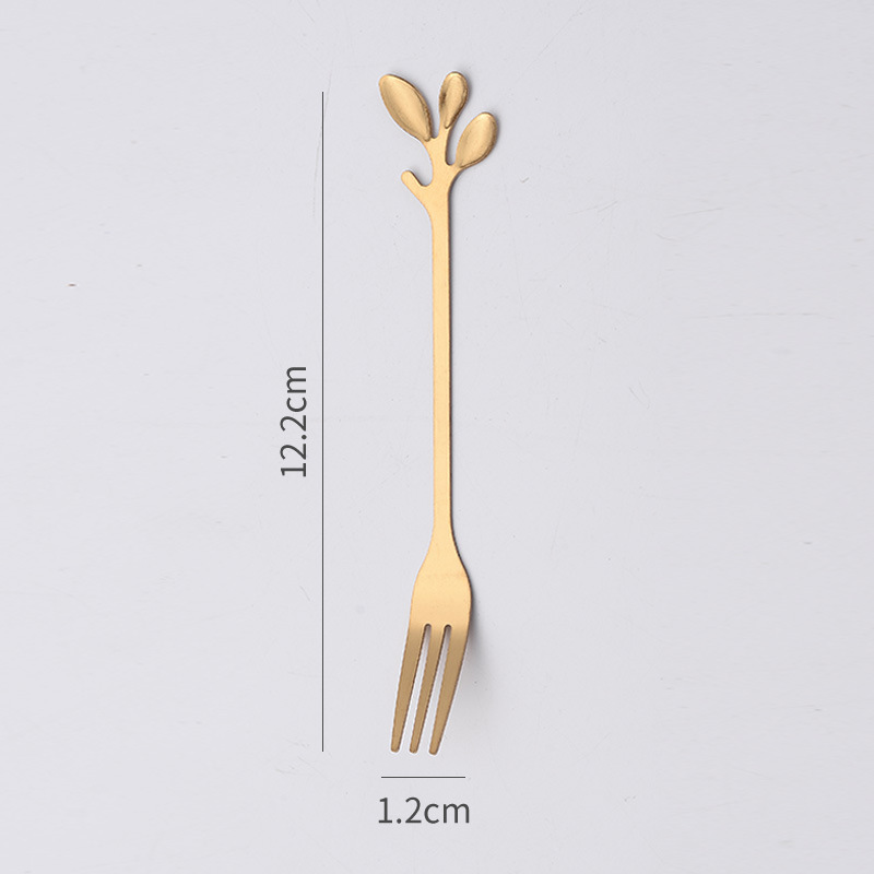 Нержавеющая сталь ложка золотые листья ложка фруктовая вилка с ручной ложкой кофейная ложка