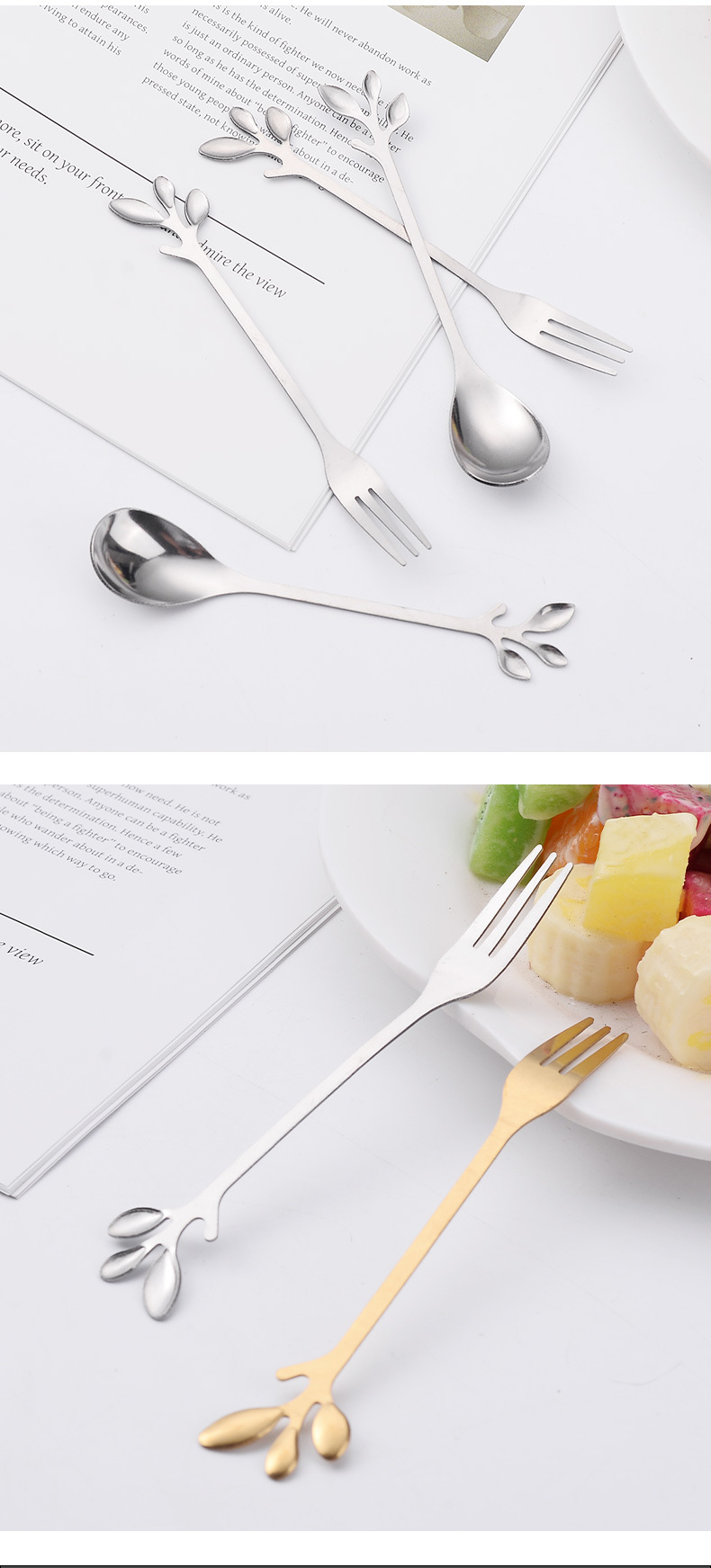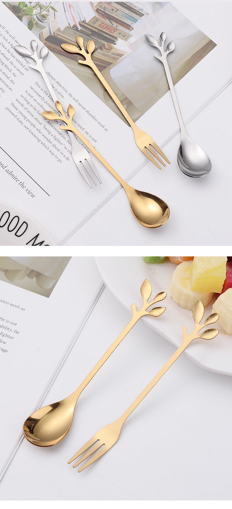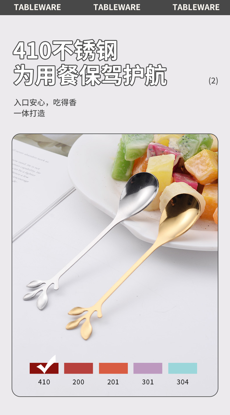 Нержавеющая сталь ложка золотые листья ложка фруктовая вилка с ручной ложкой кофейная ложка