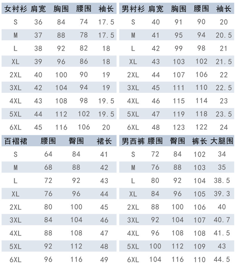 S; M; L; XL; XXL; XXXL; XXXXL; 5XL; 6XL