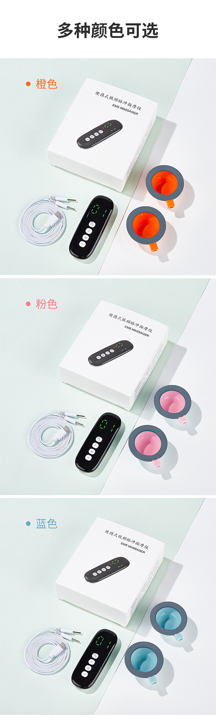 В верхнюю часть входит полный набор оранжевых присосок | 10 режимов + 39 уровней регулировки интенсивности; В верхнюю часть входит полный набор зеленой присоски | 10 режимов + 39 уровней регулировки интенсивности; Пара синих присосок (без основного блока и других компонентов); Пара отдельных оранжевых присосок (без основного устройства и других компонентов)