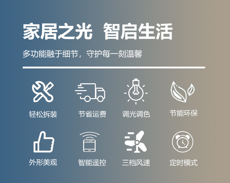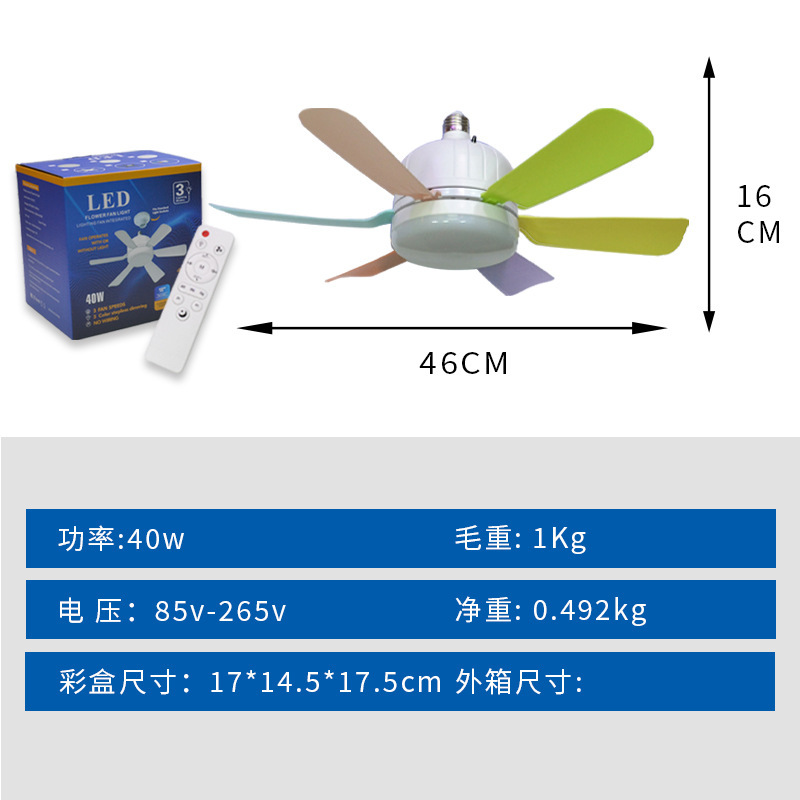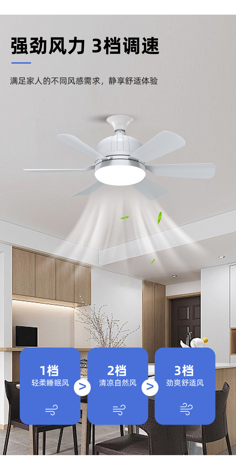 Трансграничная люстра Светодиодный лопасти E27E26 Вентилятор Лампа многофункциональная трехцветная затемнение светильника для гостиной