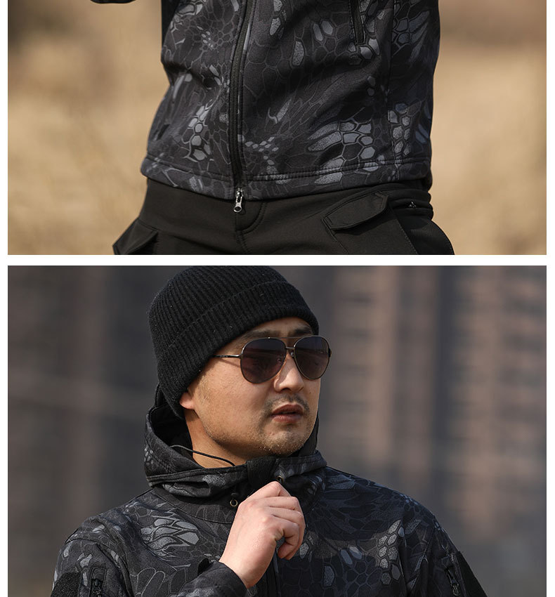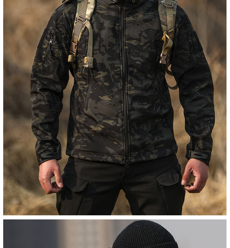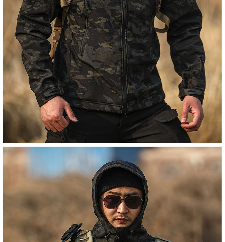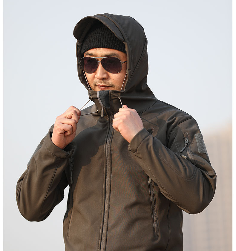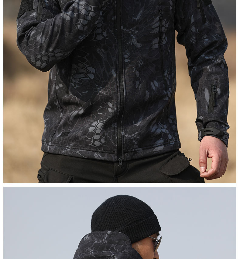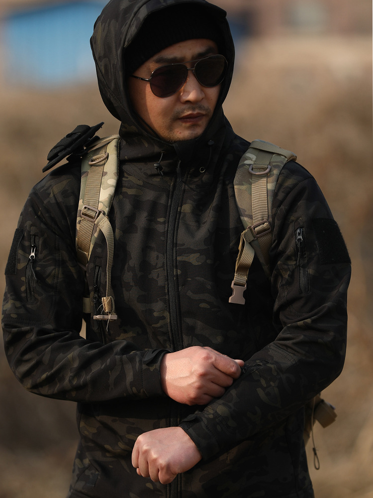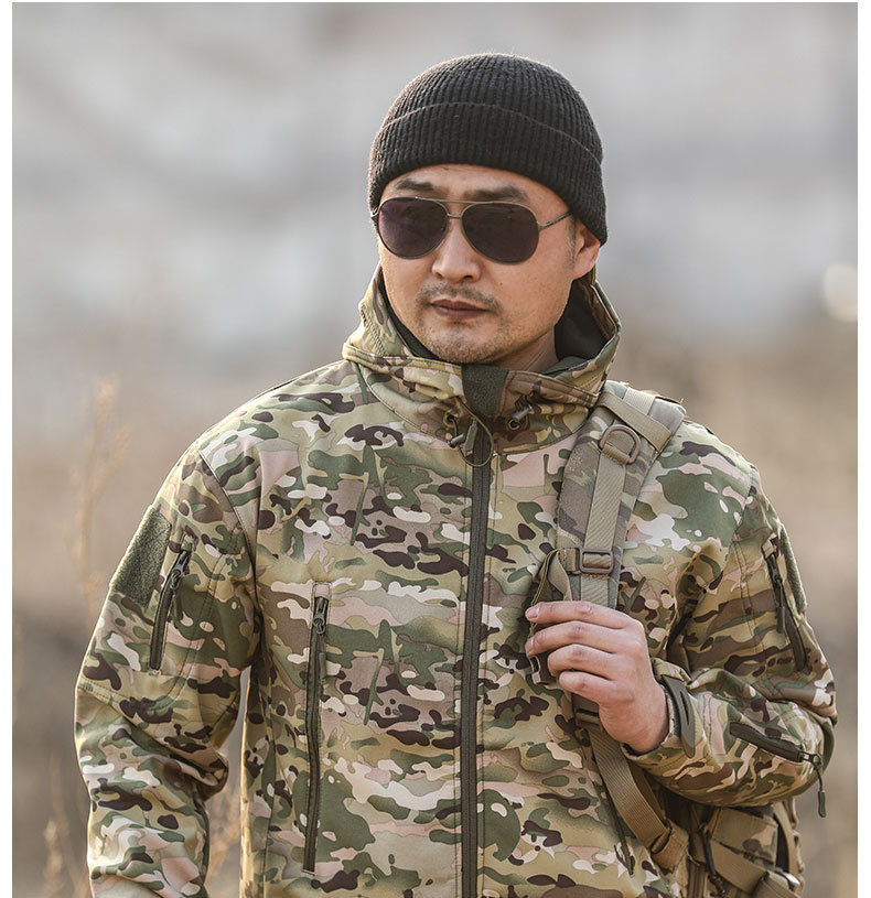 Открытый камуфляж три в одном куртка для мужчин теплый водонепроницаемый плюс бархат осенняя и зимняя мягкая оболочка с несколькими карманными куртками