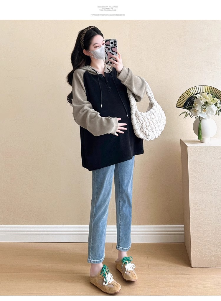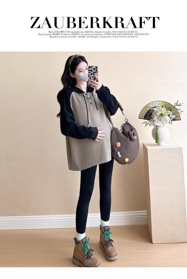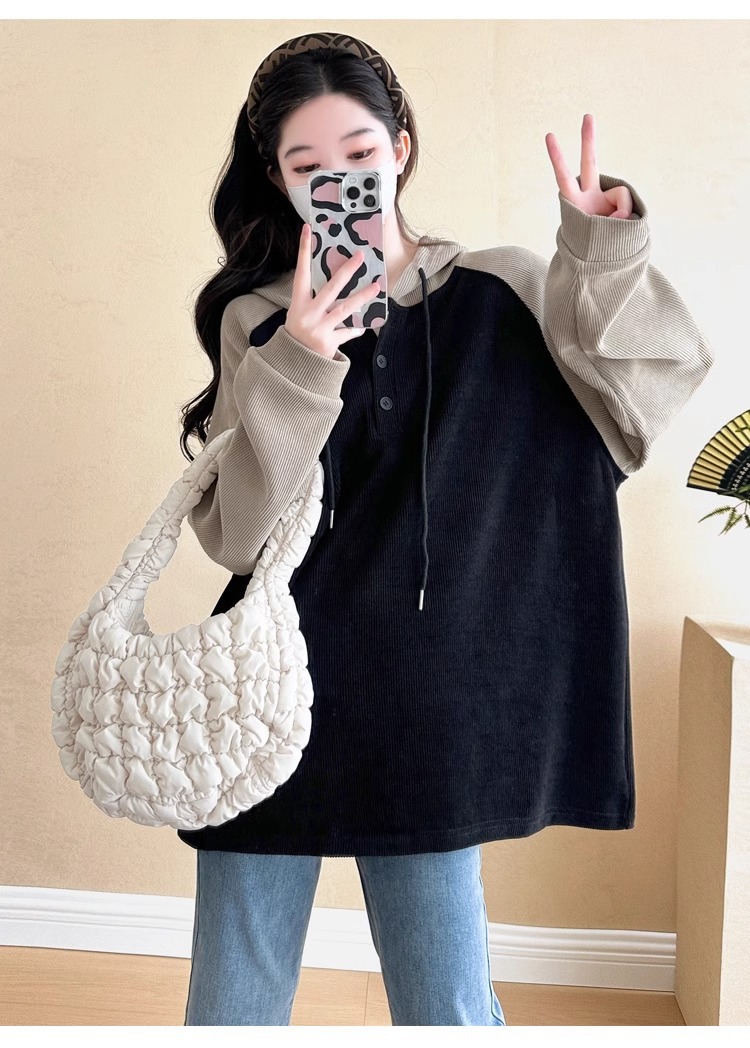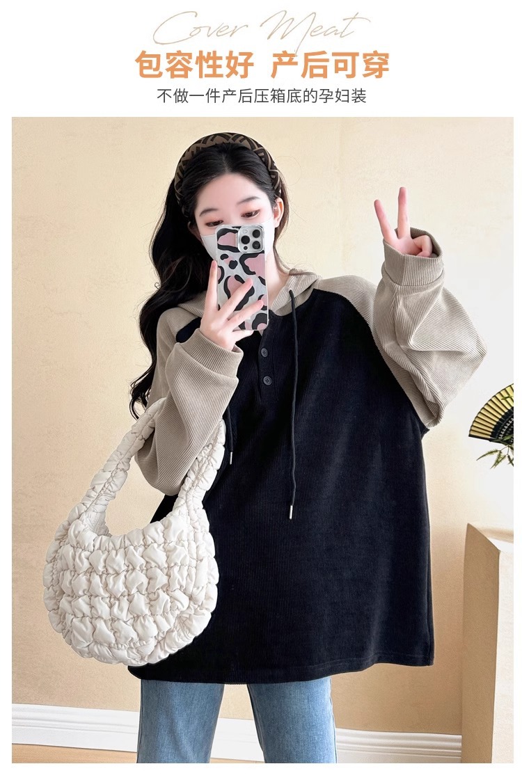 Одежда для беременных Осенняя мода цветная шапка с длинными рукавами топ свободный большой размер повседневный свитер осенняя беременность нижняя рубашка