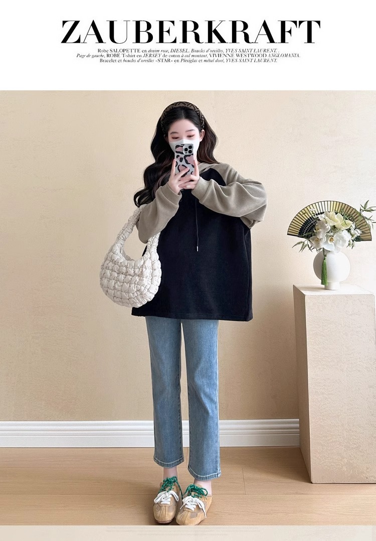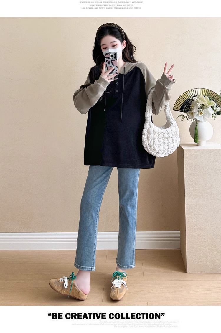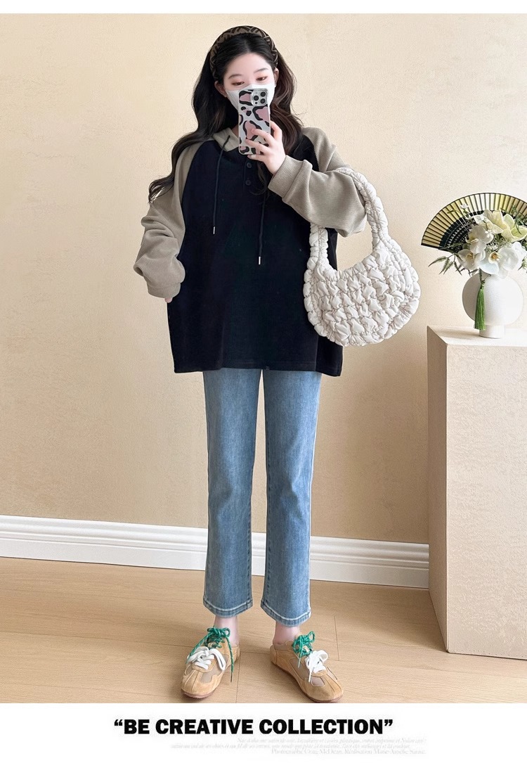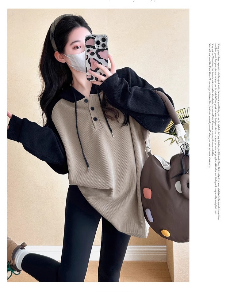 Одежда для беременных Осенняя мода цветная шапка с длинными рукавами топ свободный большой размер повседневный свитер осенняя беременность нижняя рубашка