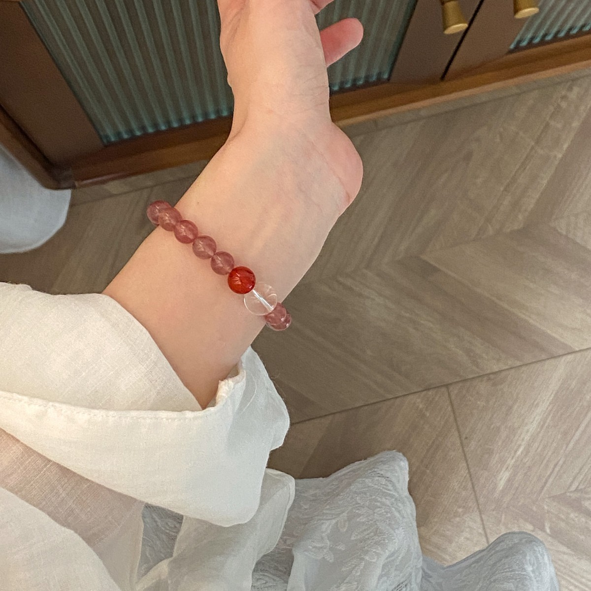 Оригинальный дизайн, розовый натуральный клубничный кристалл, белый водный кристалл, красный агат, ниша, цветок персика, универсальный изысканный браслет для женщин