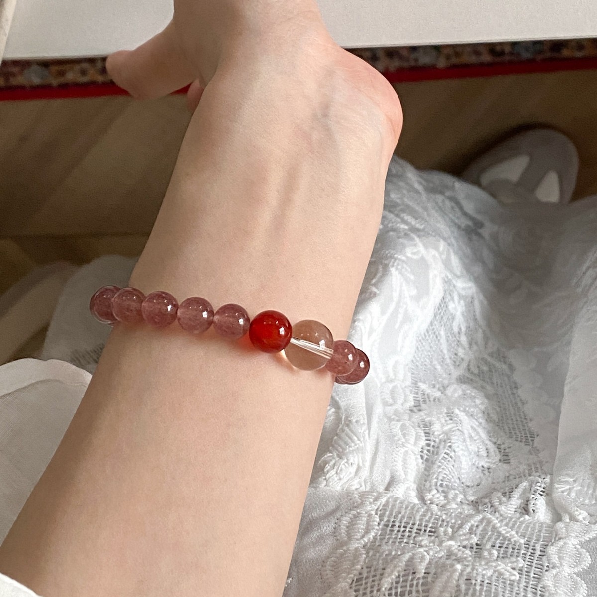材质:8mm左右天然草莓晶+9mm天然红玛瑙+11-12mm压电白水晶