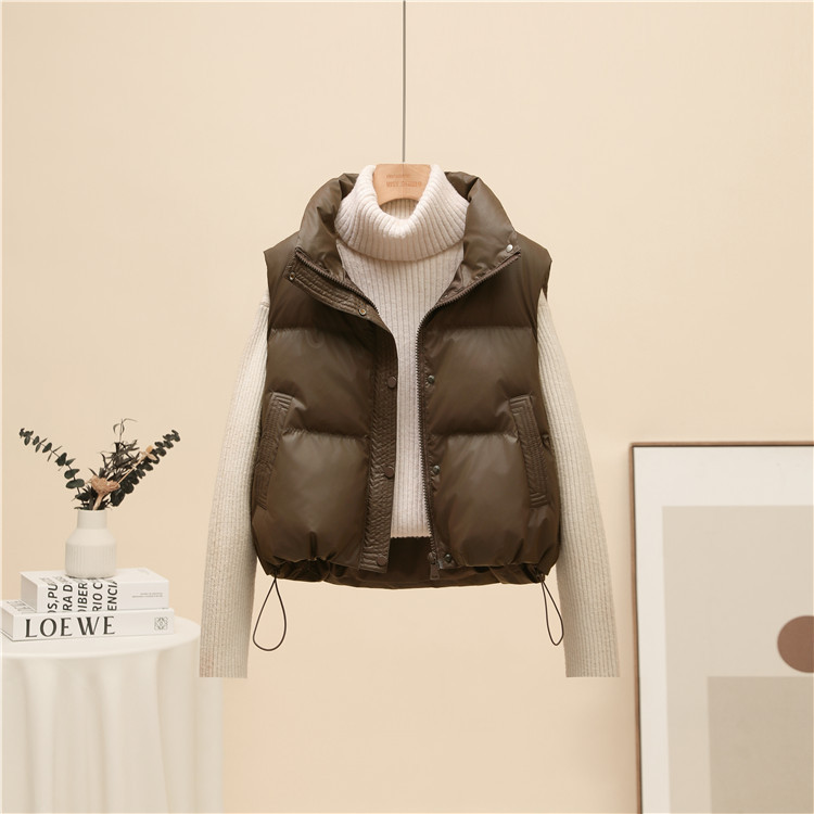 Женский короткий жилет из искусственной кожи PU, не требующий стирки, осенне-зимняя коллекция 2025 года, корейский стиль, с воротником-стойкой, модный жилет-куртка для женщин невысокого роста.