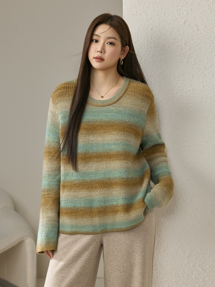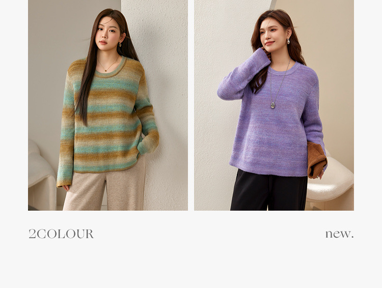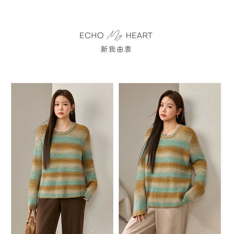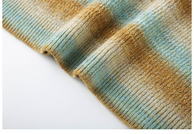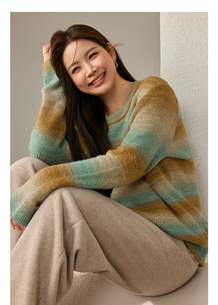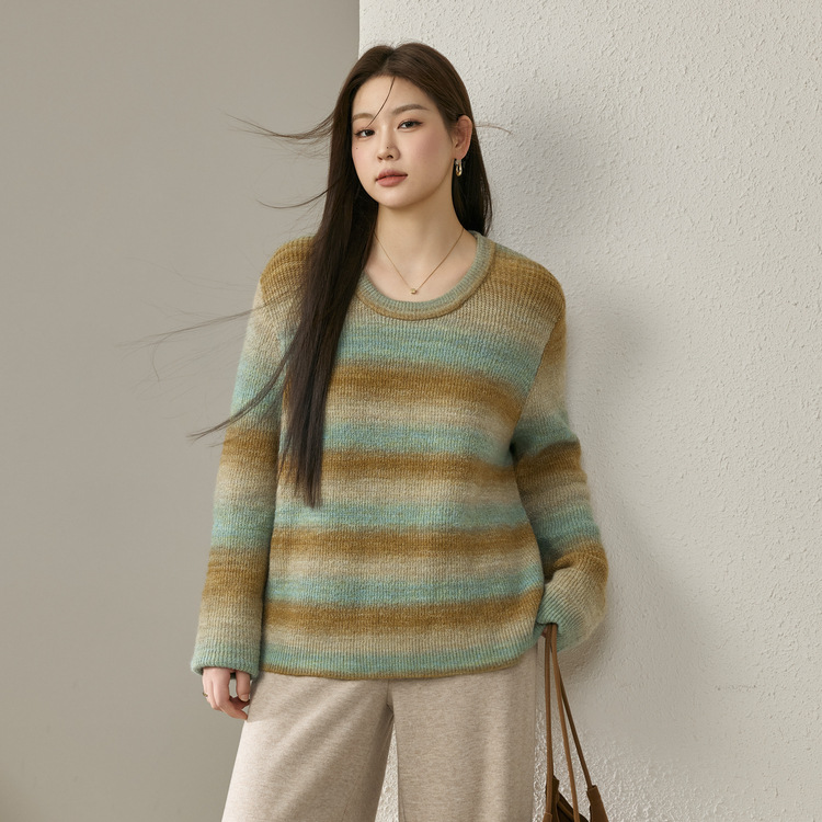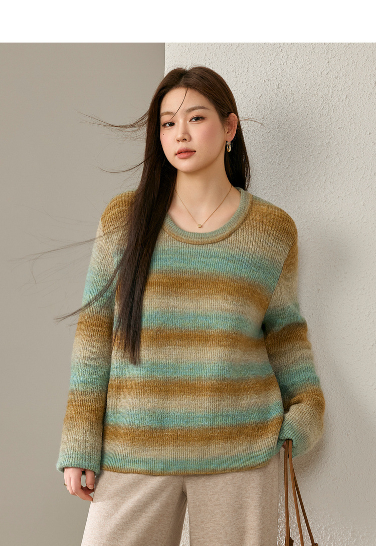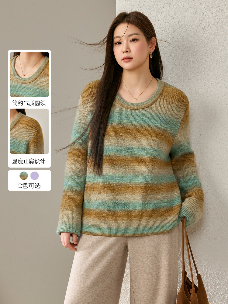 [Градиентный полосатый топ] Полосатый большой размер женский ретро свитер американский толстый mm2024 зимний новый
