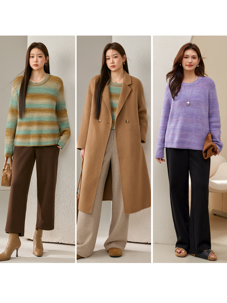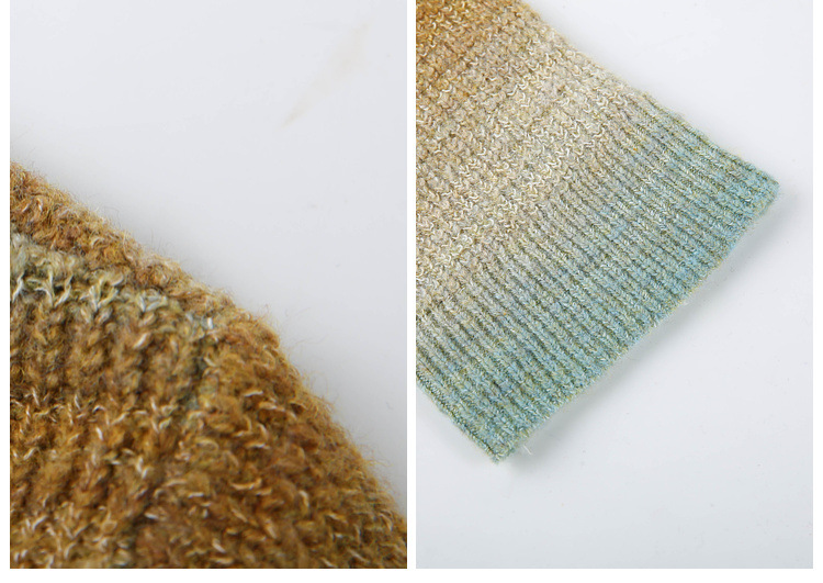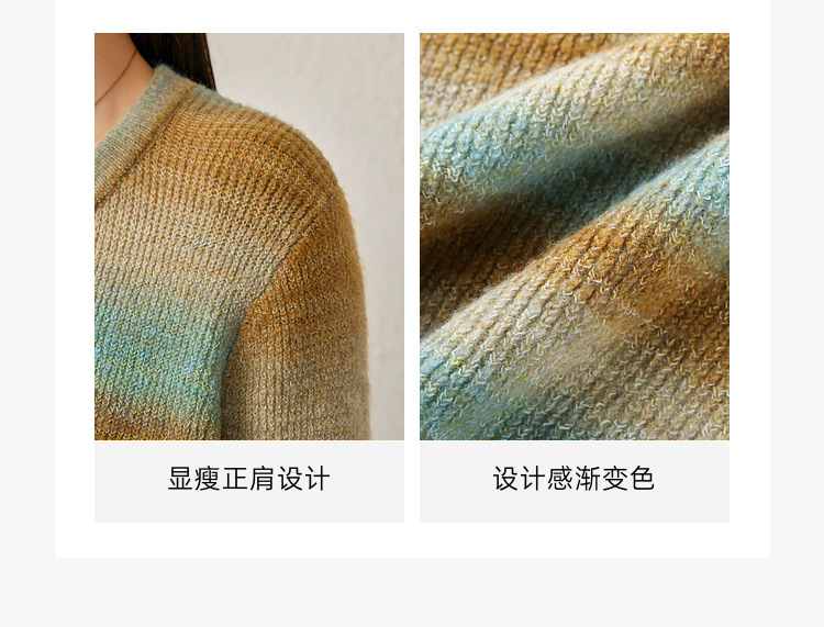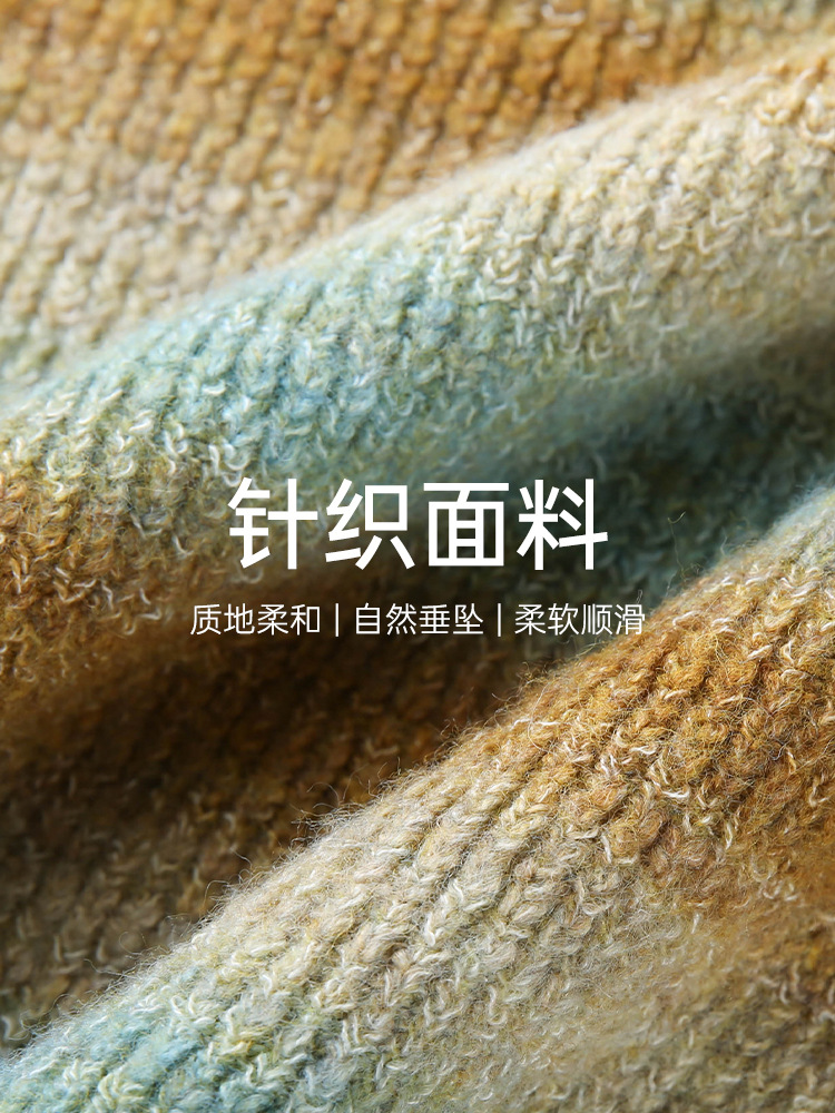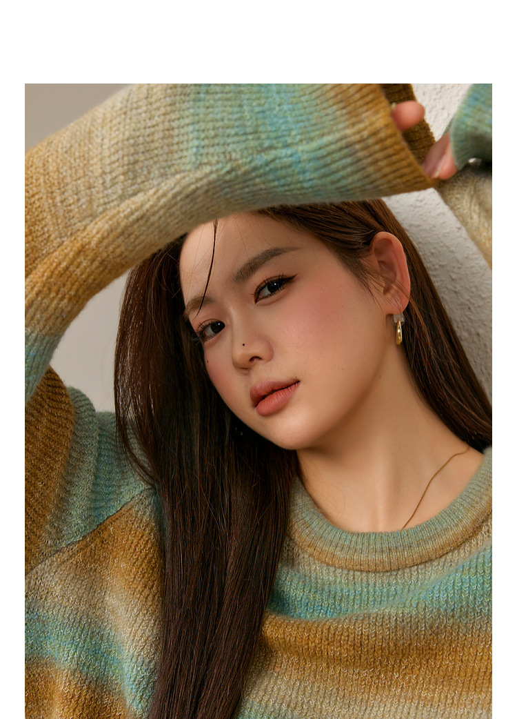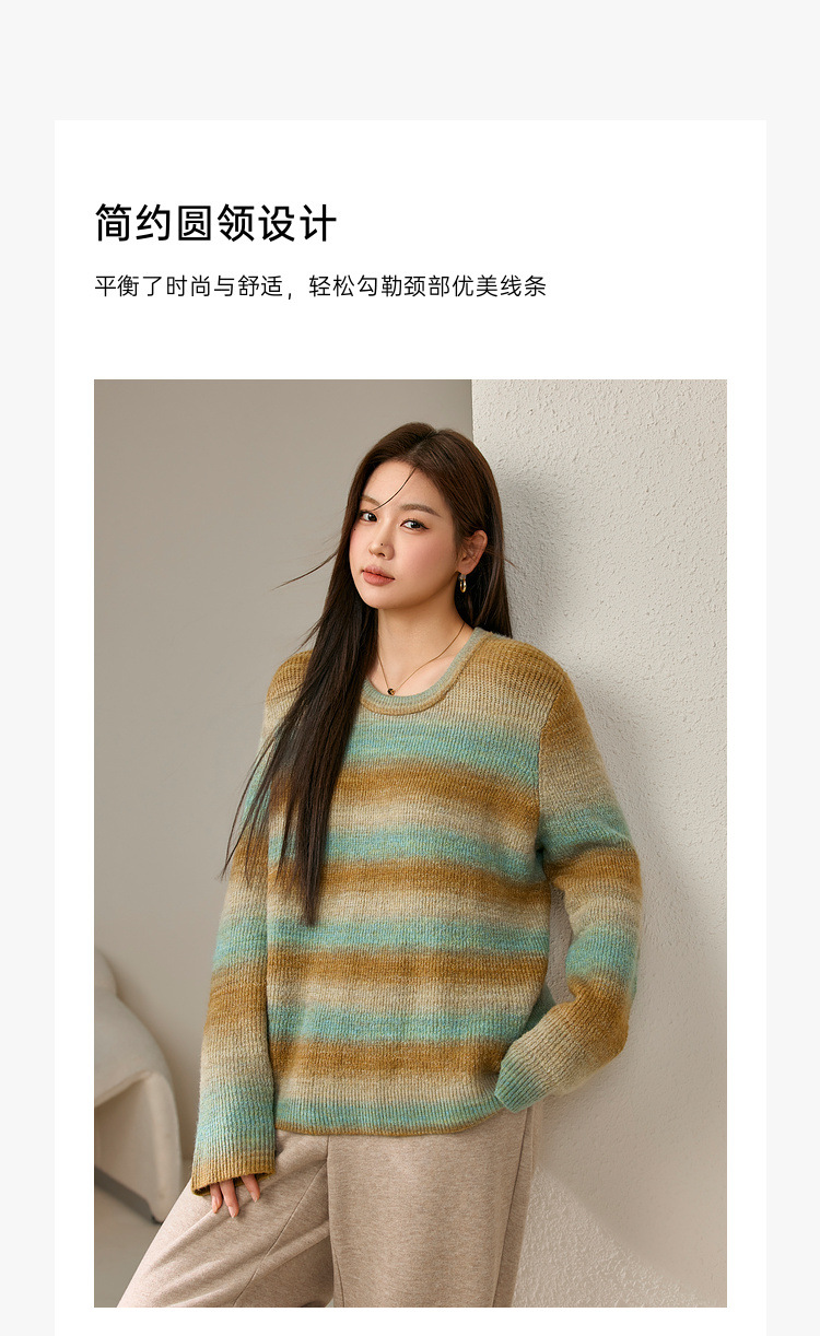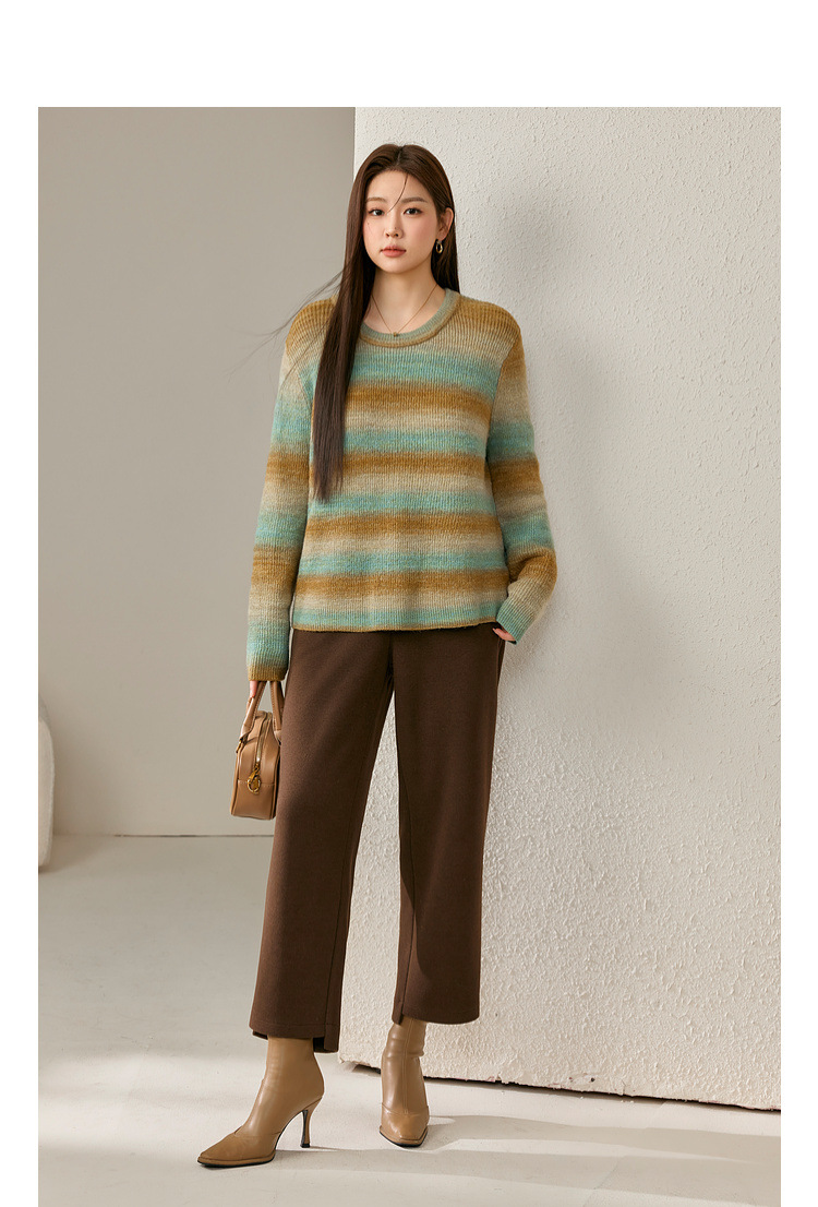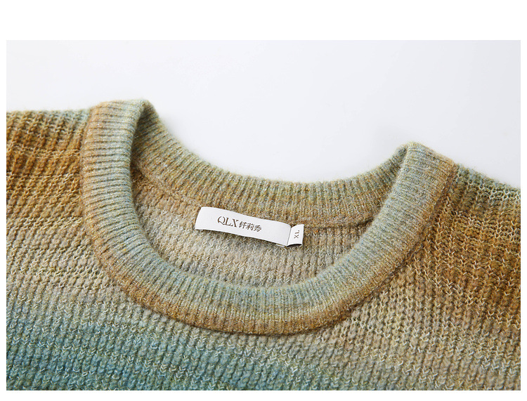 [Градиентный полосатый топ] Полосатый большой размер женский ретро свитер американский толстый mm2024 зимний новый