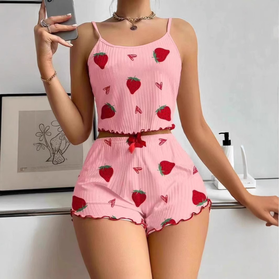 2024 новый европейский и американский женский пижама модный набор трансграничной внешней торговли дизайн принт сладкий подтяжка шорты