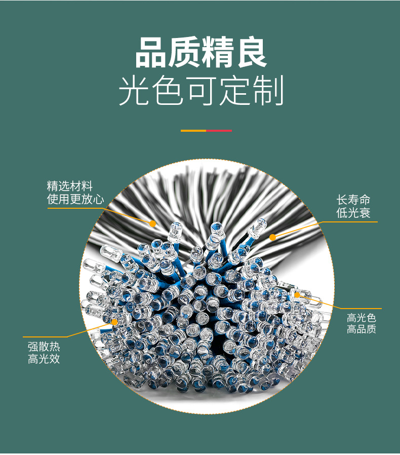 Светодиодные лампы излучают синий свет с помощью кабеля.