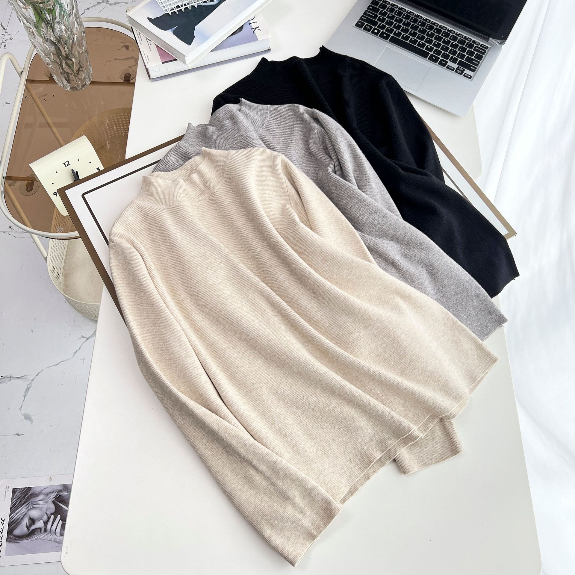 200 больших размеров женщин осень новая толстая сестра повседневная половинная высокая воронка мягкая клейкая вязаная рубашка с 5460