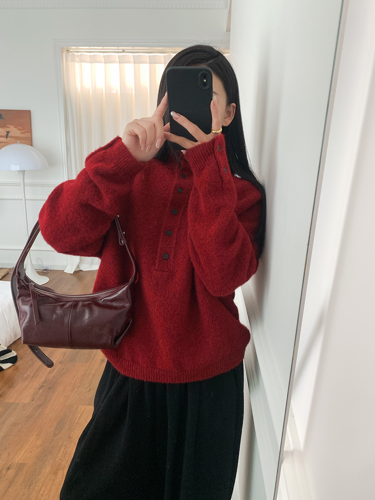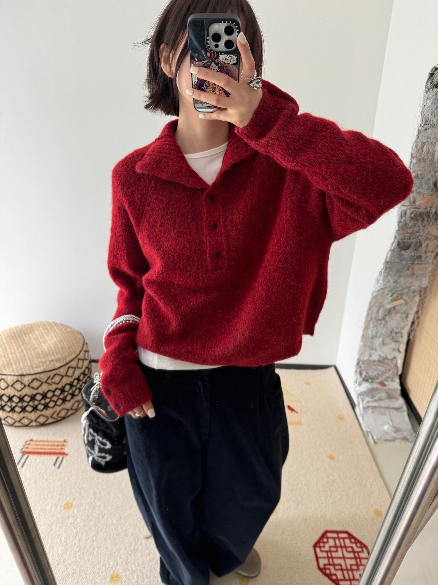Cor25 осень и зима новый цвет альпака шерсть сплошной цвет младенец полукаловка с длинными рукавами теплый мягкий клейкий красный женский свитер