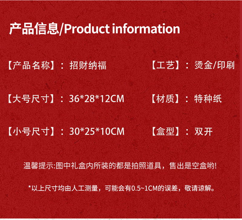 Подарочная коробка Lucky + подарочный пакет; маленький размер 30*25*10㎝Внутренний диаметр (пустая коробка); Подарочная коробка Lucky + подарочный пакет; большой размер 36*28*12㎝Внутренний диаметр (пустая коробка)