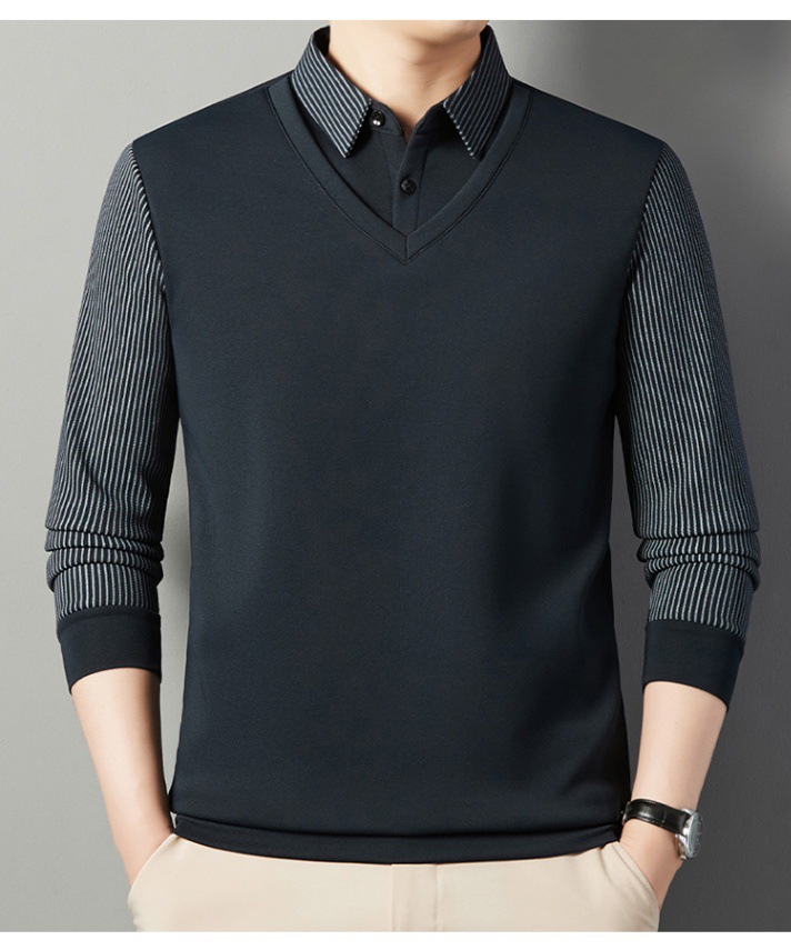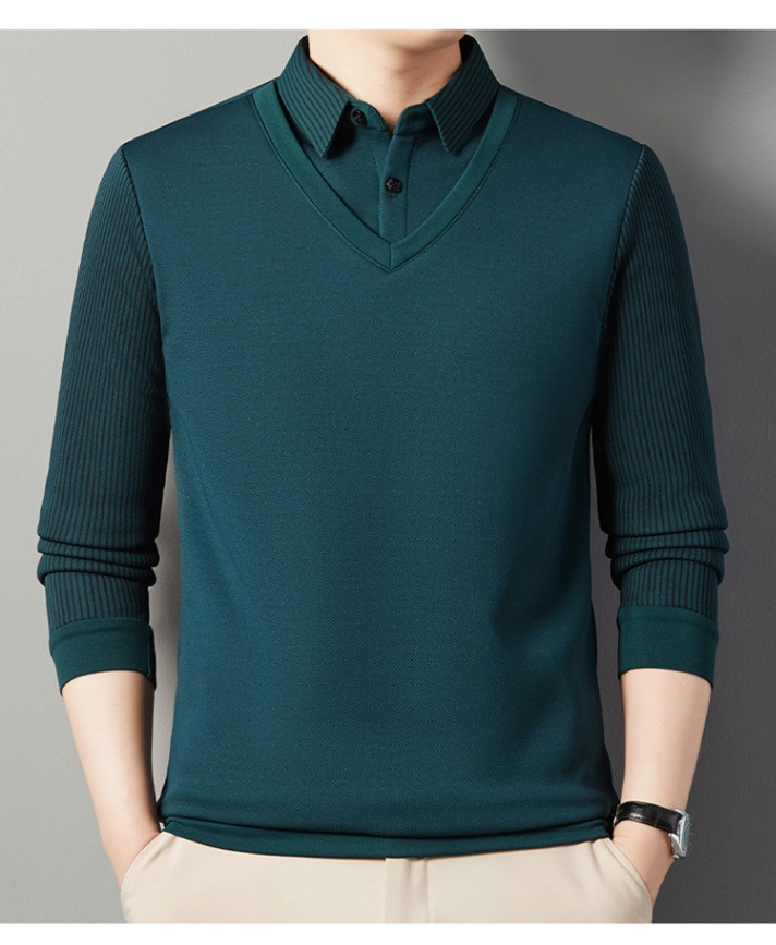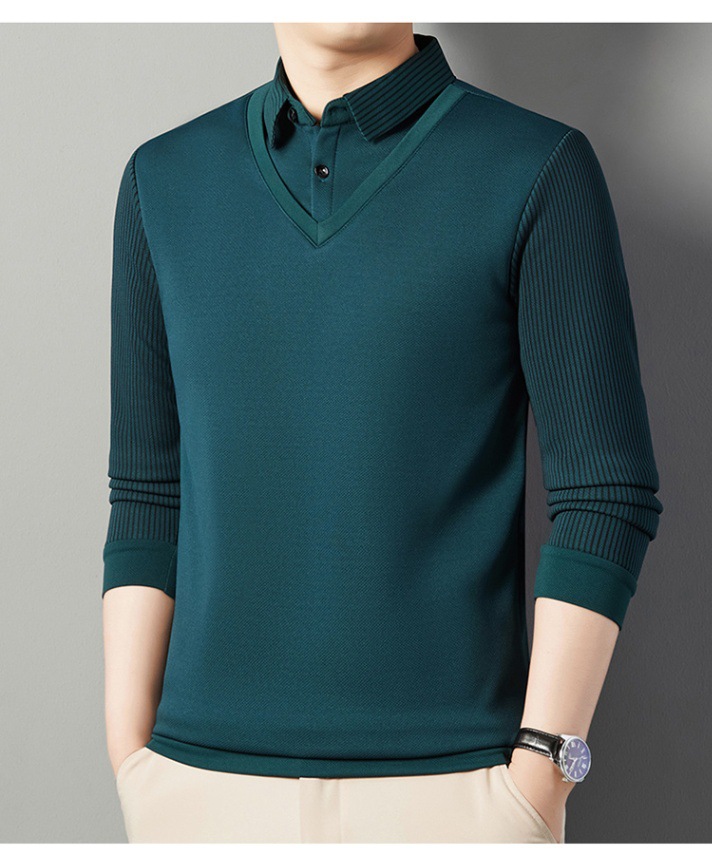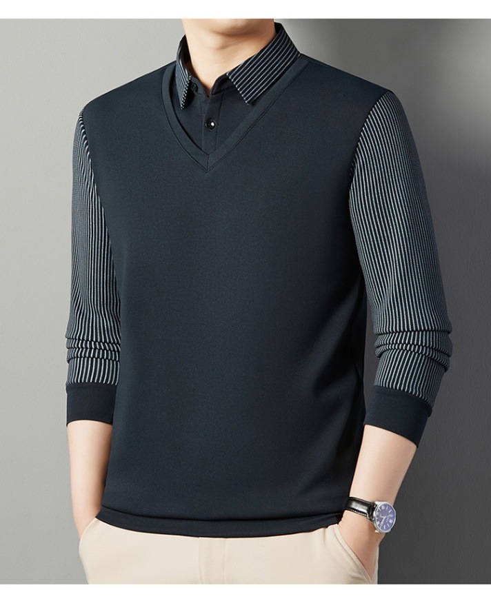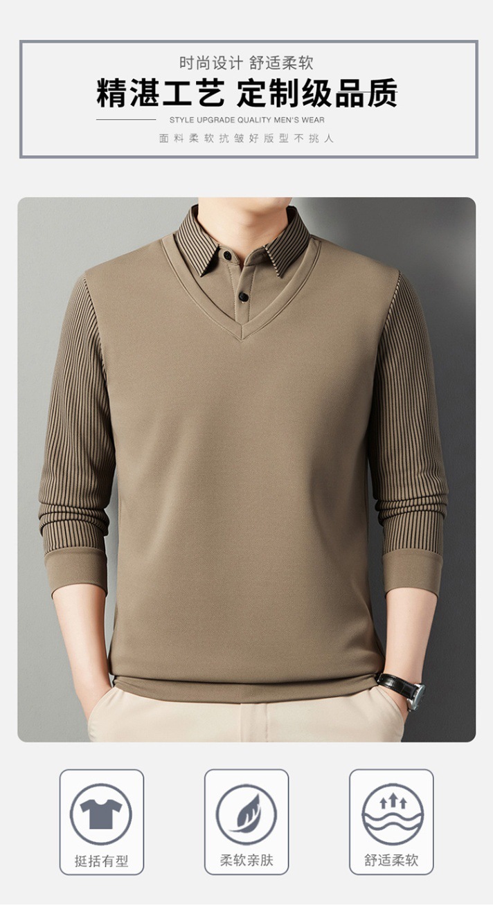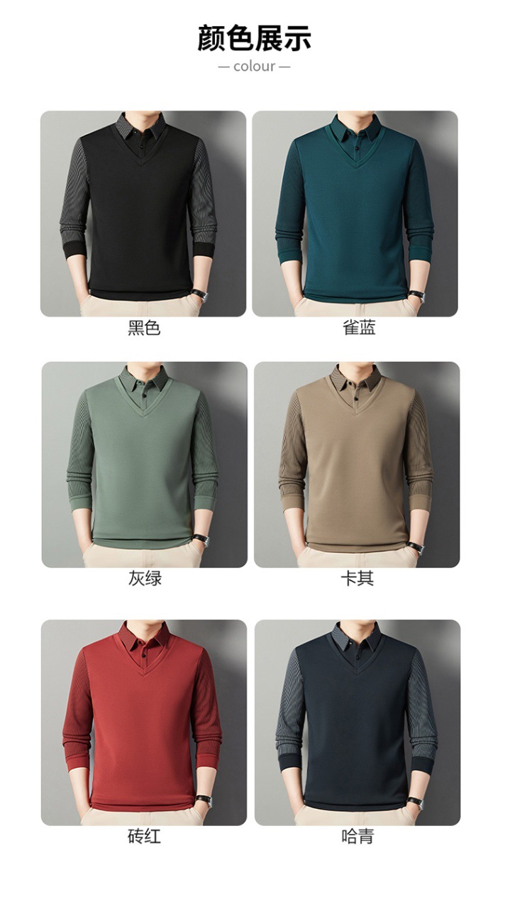 2024 новые поддельные две мужские футболки с длинными рукавами весной и осенью рубашки воротник высокого класса дикие вязаные нижние рубашки