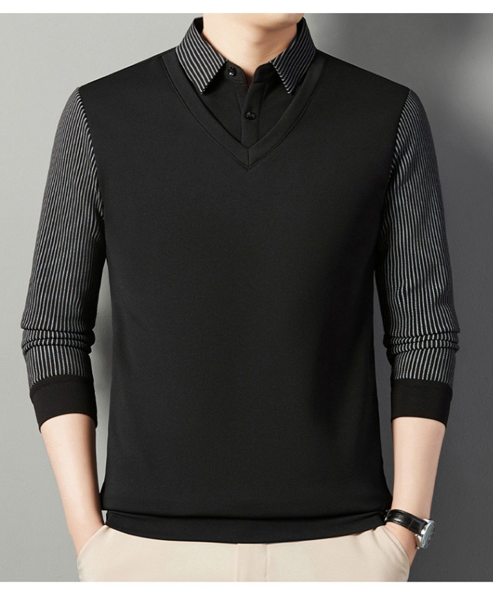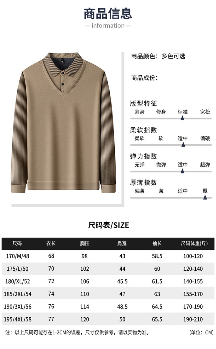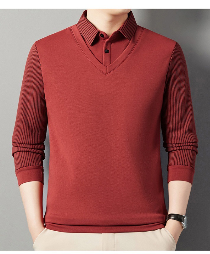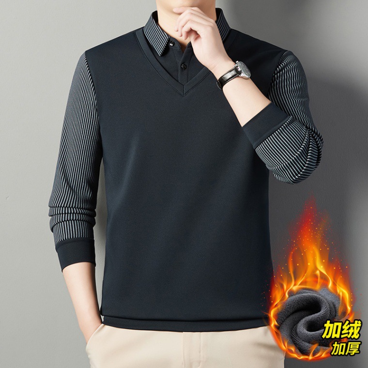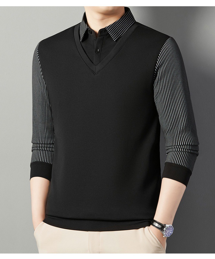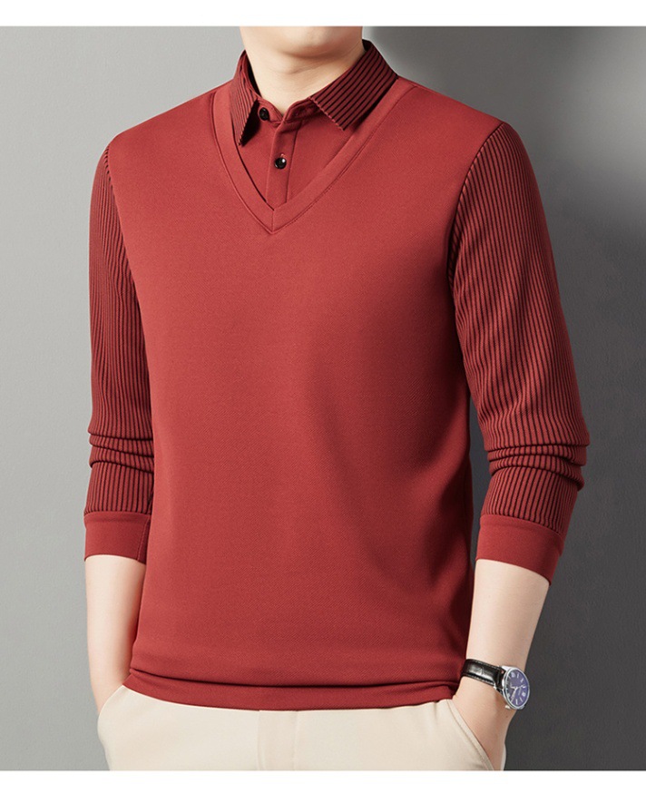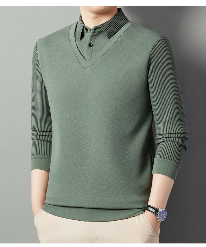 2024 новые поддельные две мужские футболки с длинными рукавами весной и осенью рубашки воротник высокого класса дикие вязаные нижние рубашки