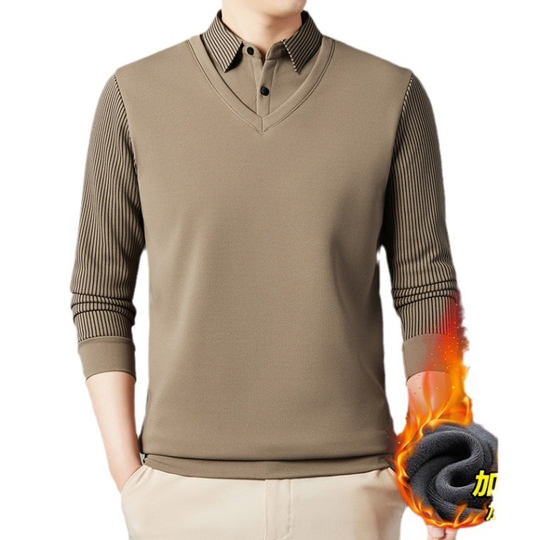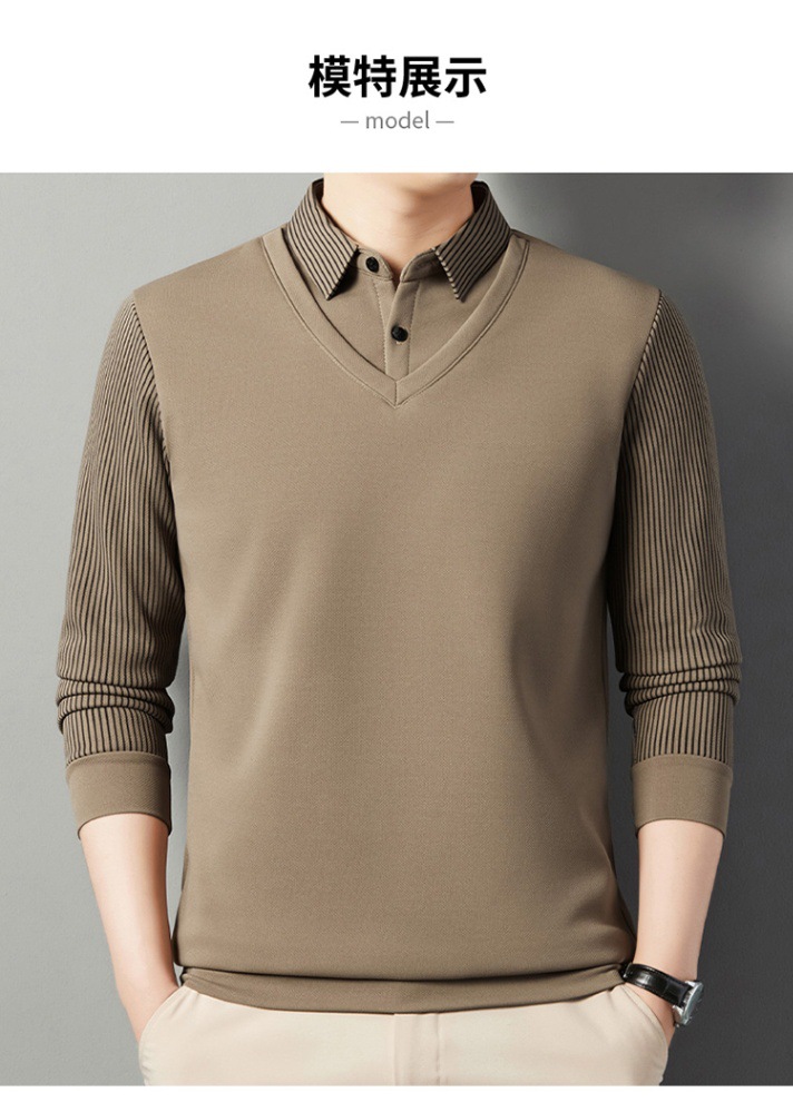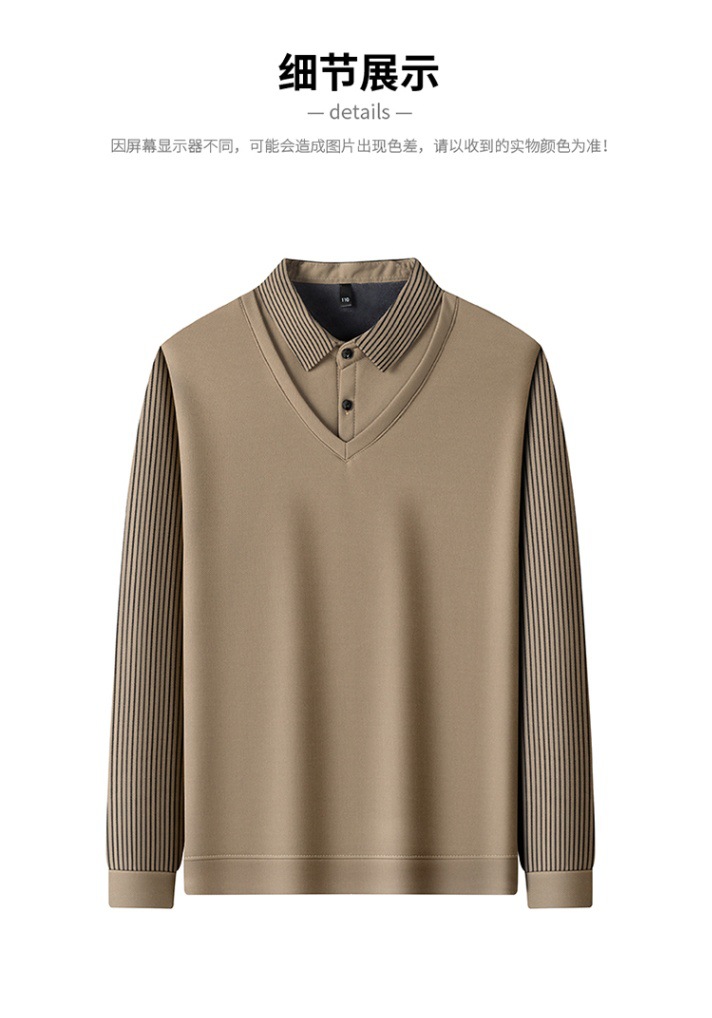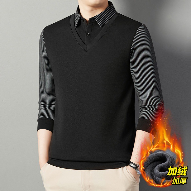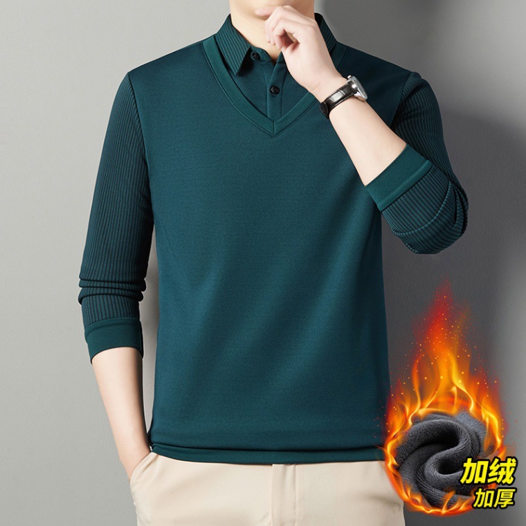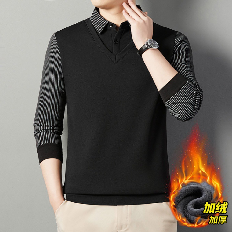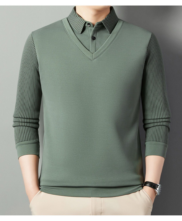 2024 новые поддельные две мужские футболки с длинными рукавами весной и осенью рубашки воротник высокого класса дикие вязаные нижние рубашки