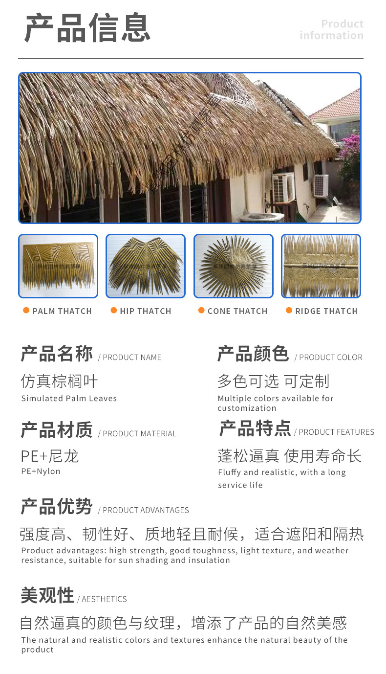 Искусственная пальмовая синтетическая солома с антиультрафиолетовыми характеристиками для моделирования пальмовых листьев курорта