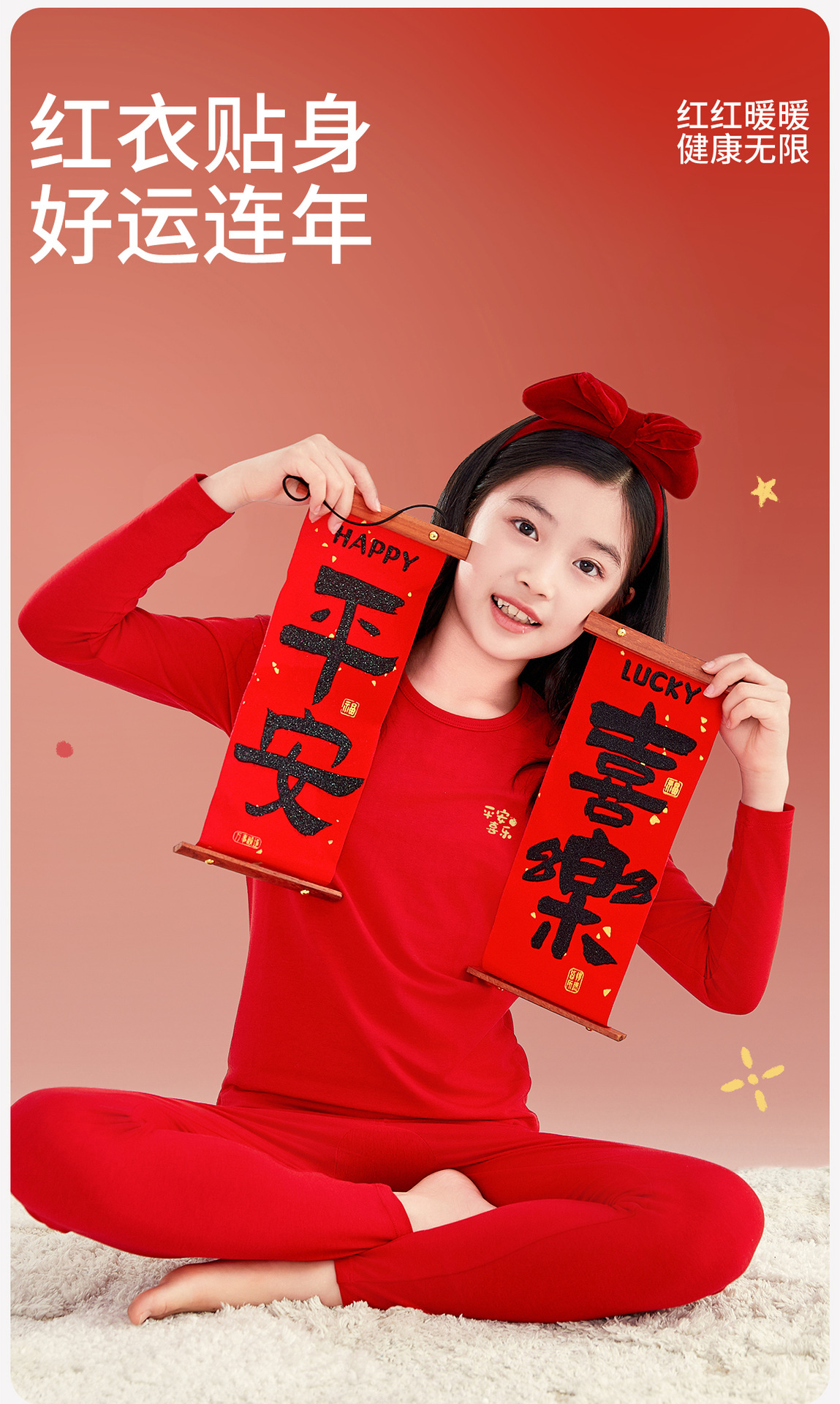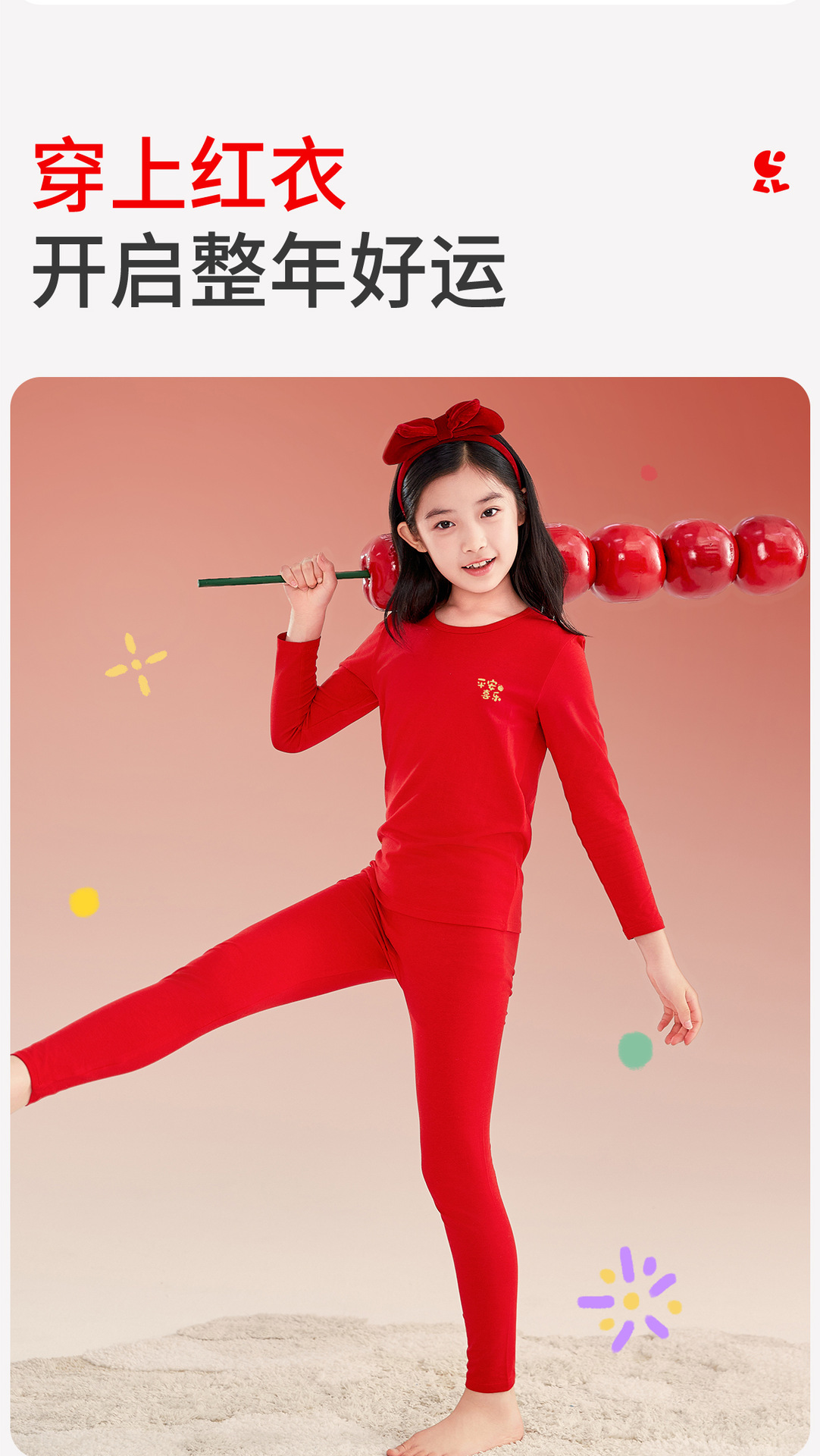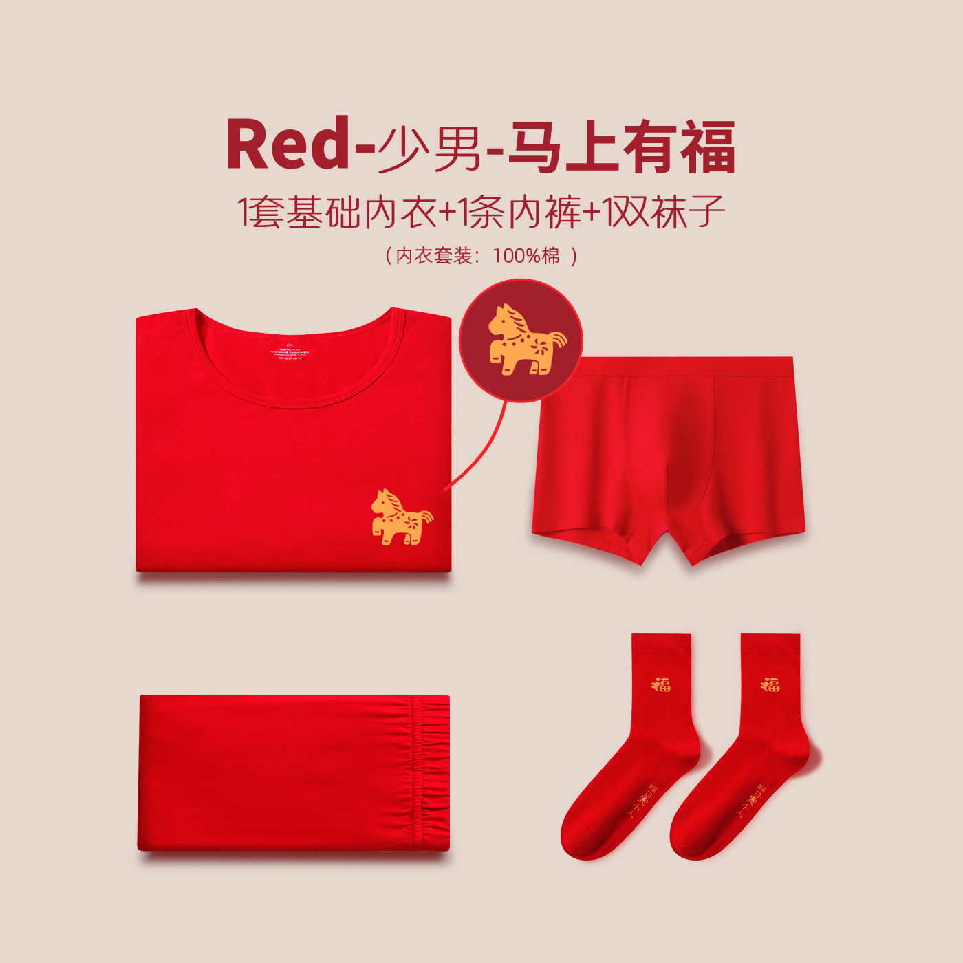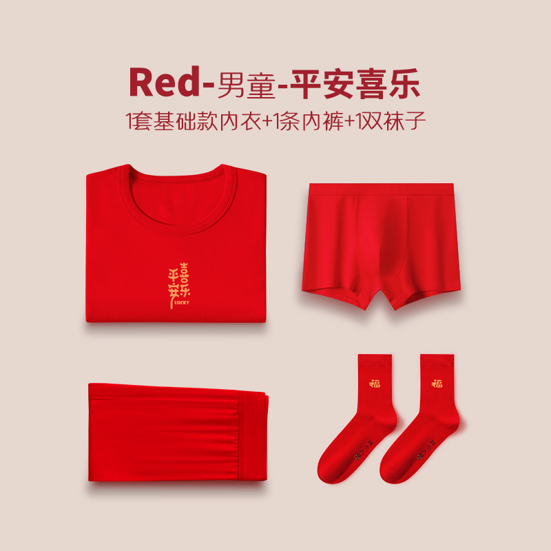 Детский комплект термобелья красного цвета, из чистого хлопка, тонкий, новогодний комплект нижнего белья для девочек, новая модель 2026 года, красный, теплый, для мальчиков.