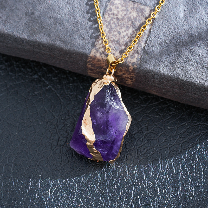 Натуральный кристалл аметист нерегулярный кулон из оригинального камня с гальваническим золотым порошком цитрин diy ювелирные аксессуары через границу