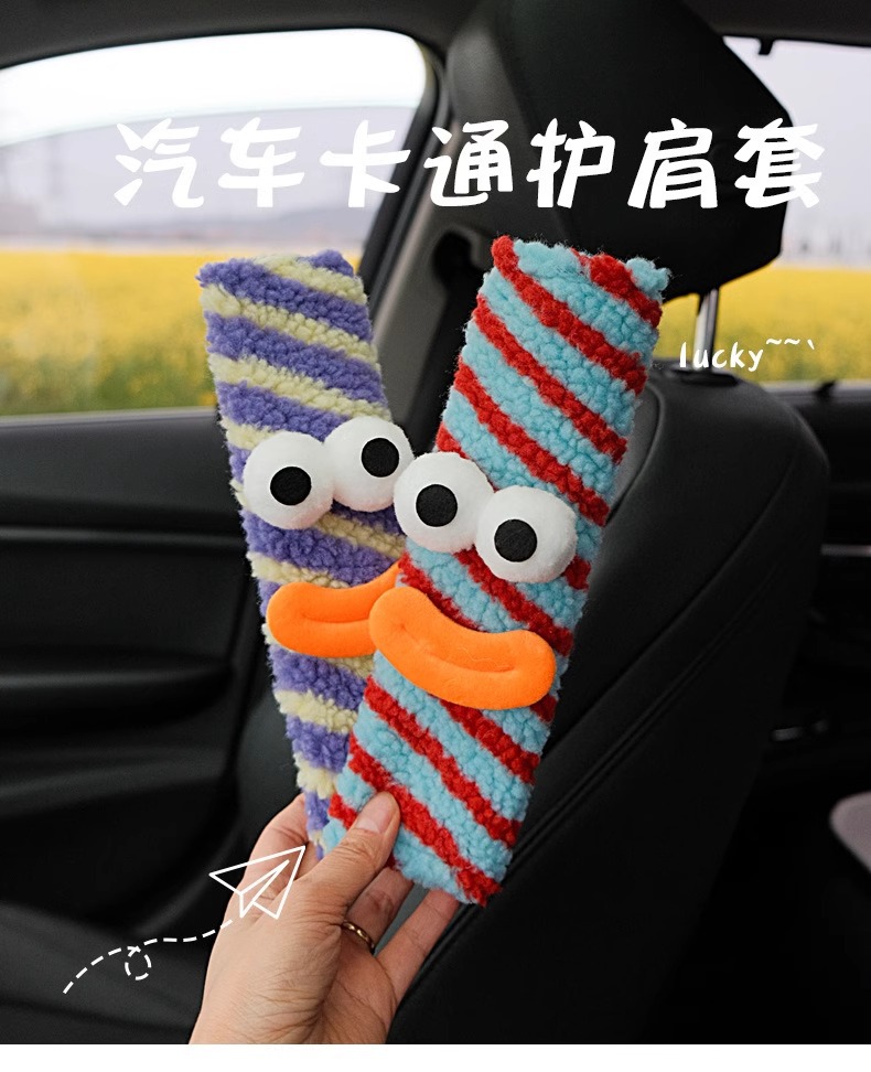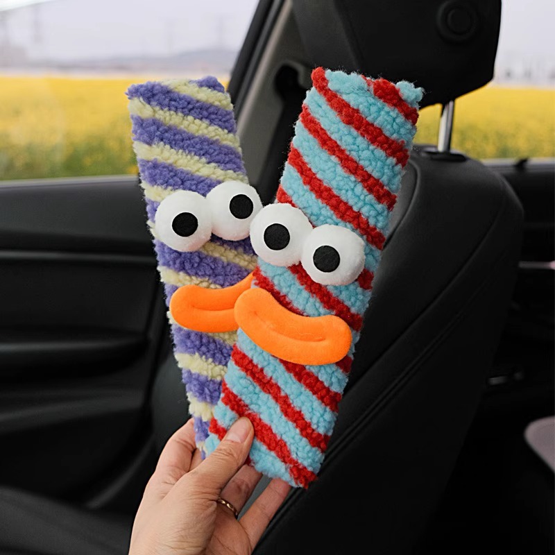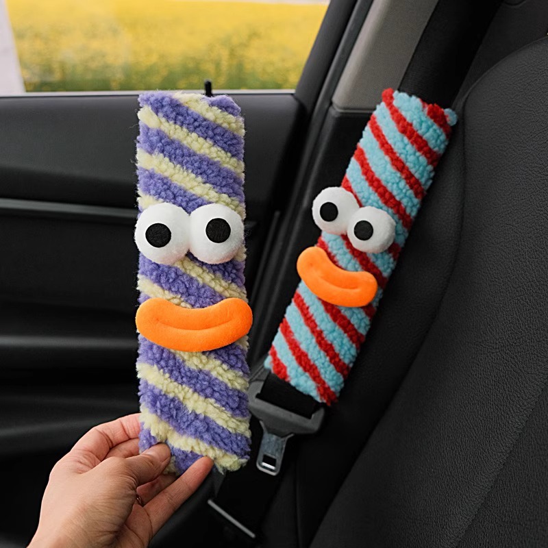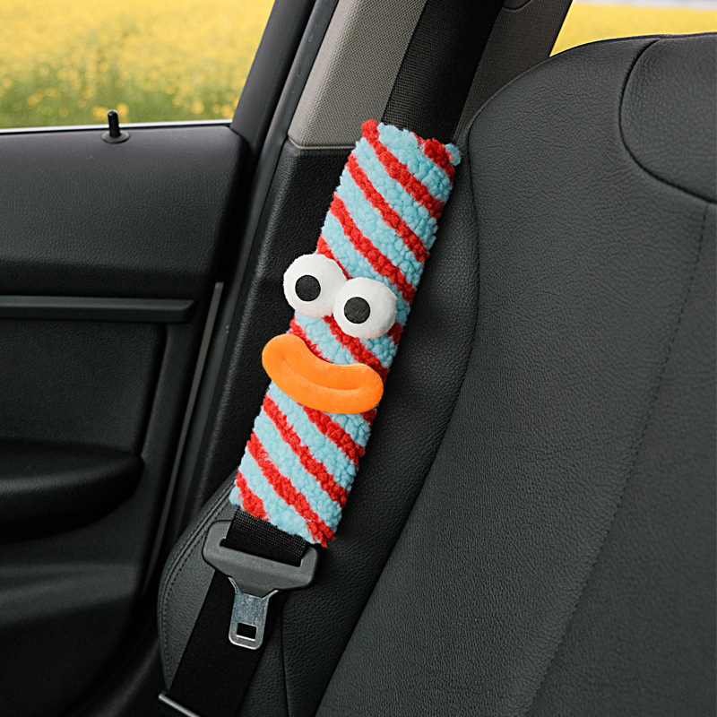 Маленький монстр, ремень безопасности автомобиля, плечевой чехол, автомобильный ремень безопасности, колбаса, рот, большие принадлежности для интерьера автомобиля, милые глаза